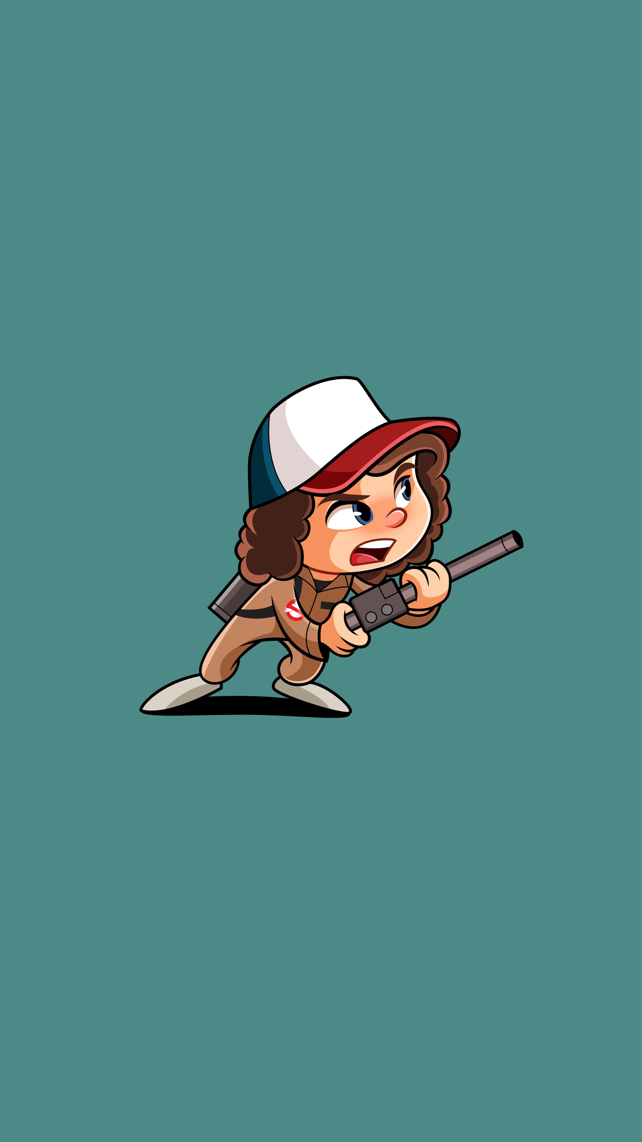أبطال مسلسل أشياء غريبة على خلفية زرقاء