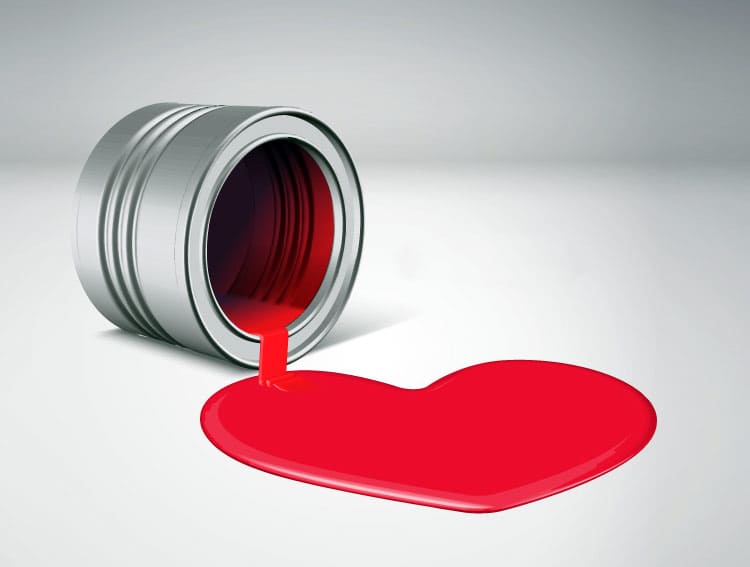 Red heart on a white saucer, white heart on a red saucer. Plenty of space for your text on the left.