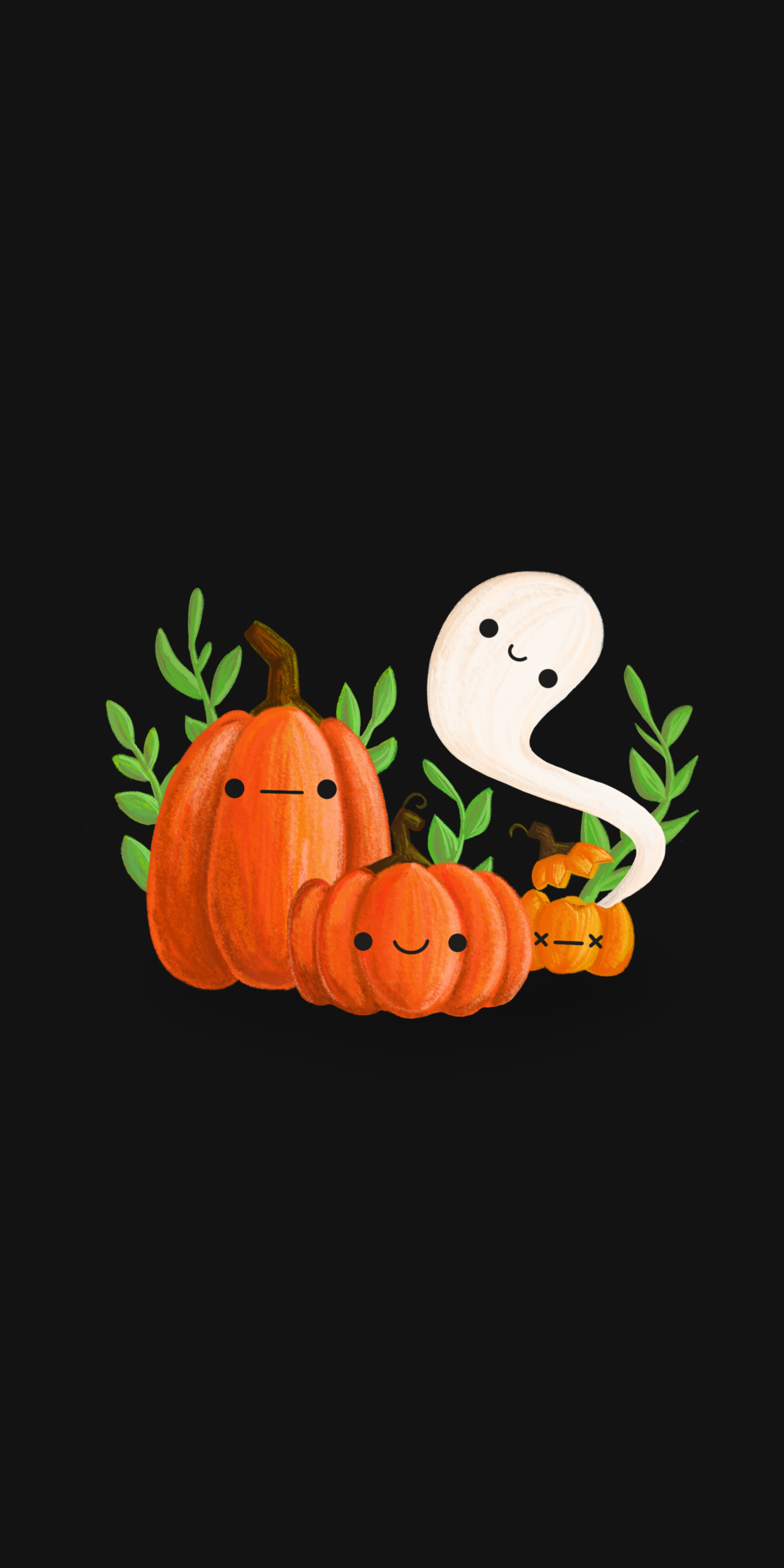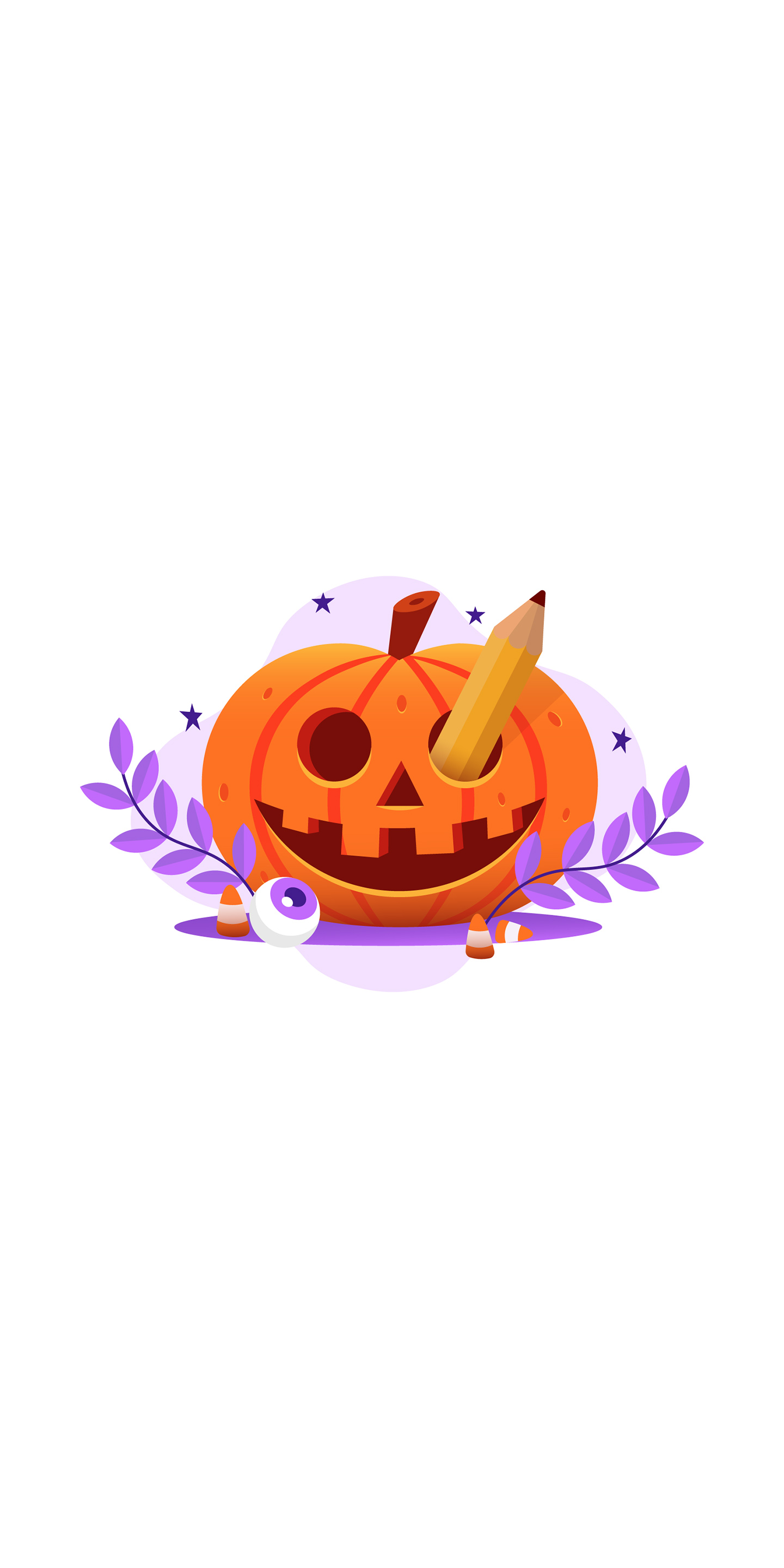 Cartoon phone wallpaper for Halloween with a Jack-o’-lantern, transparent background