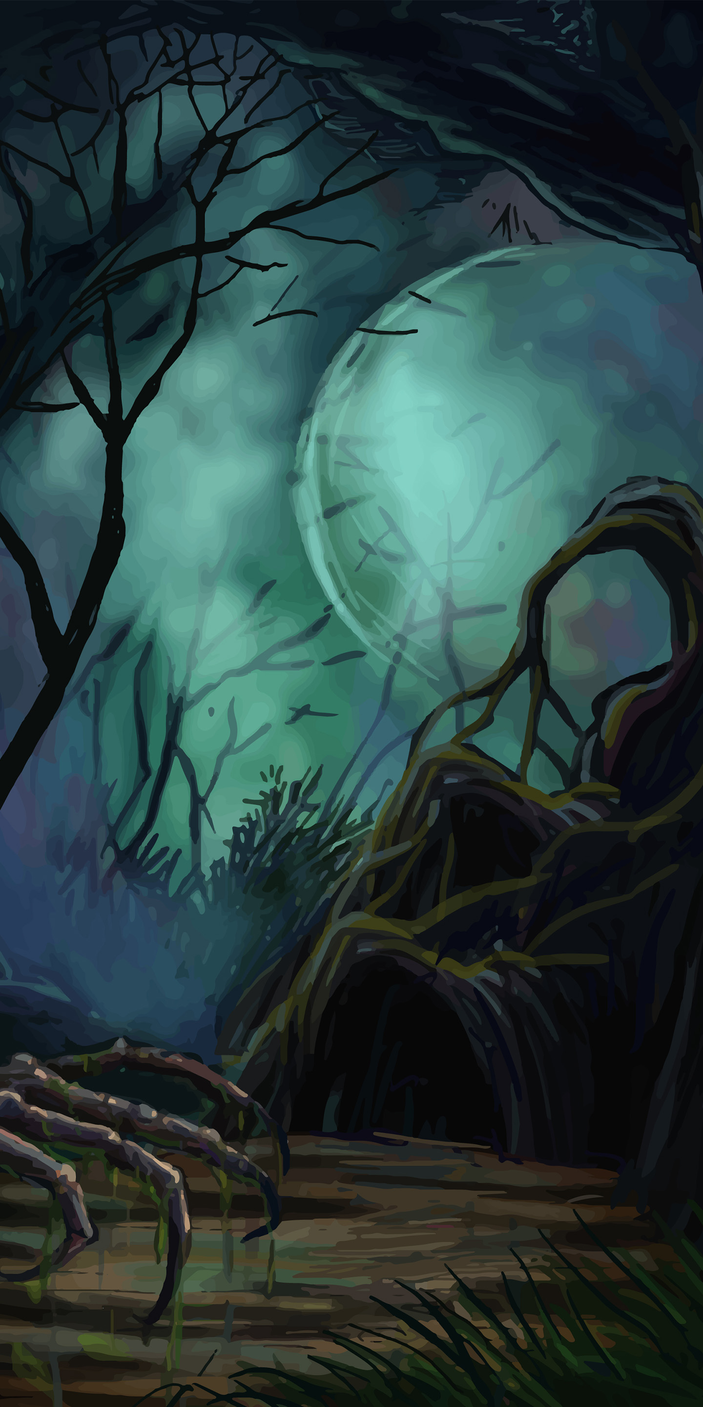 A demonic tree with pumpkins for your Halloween wallpaper