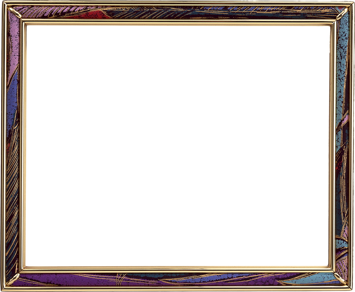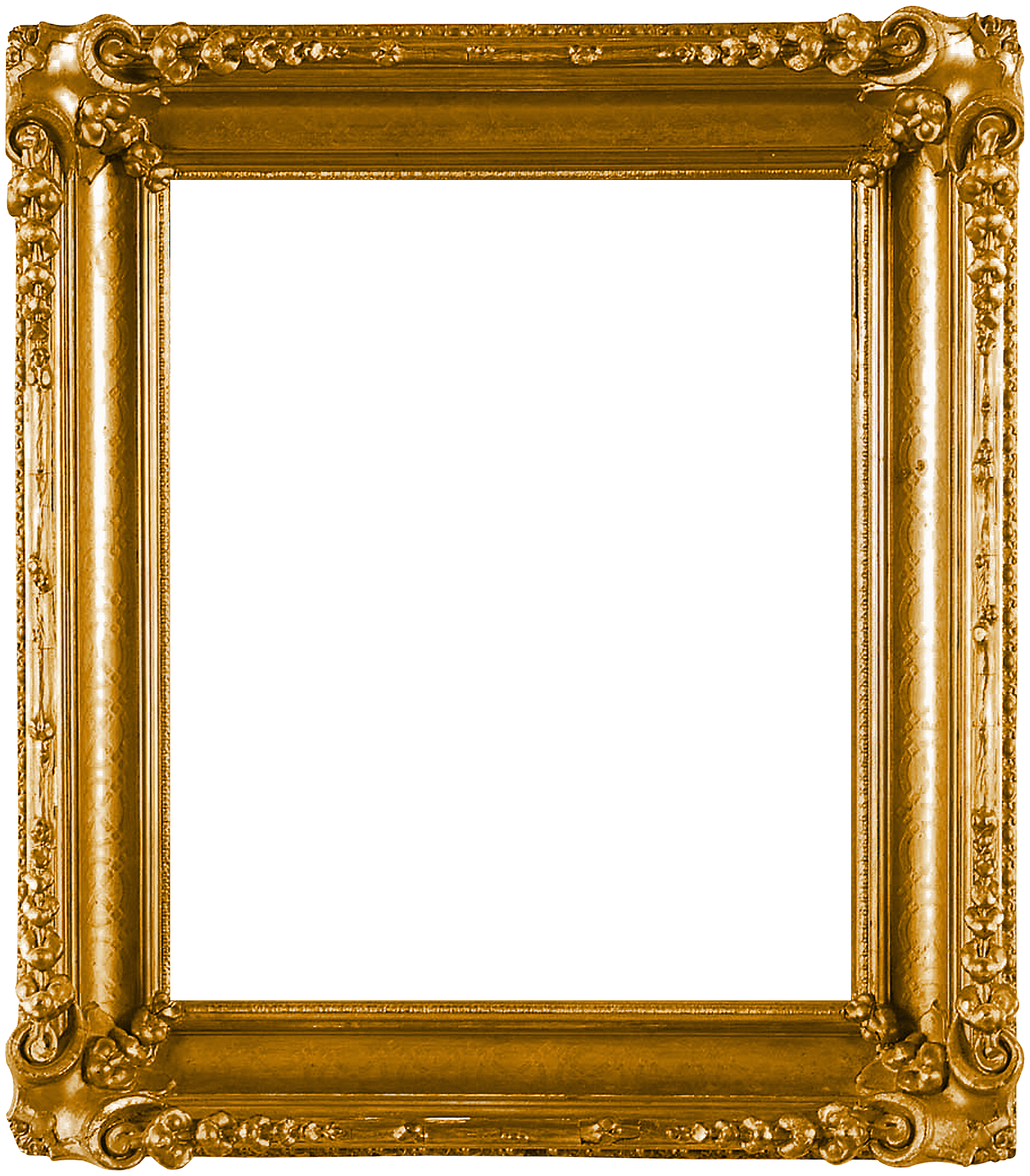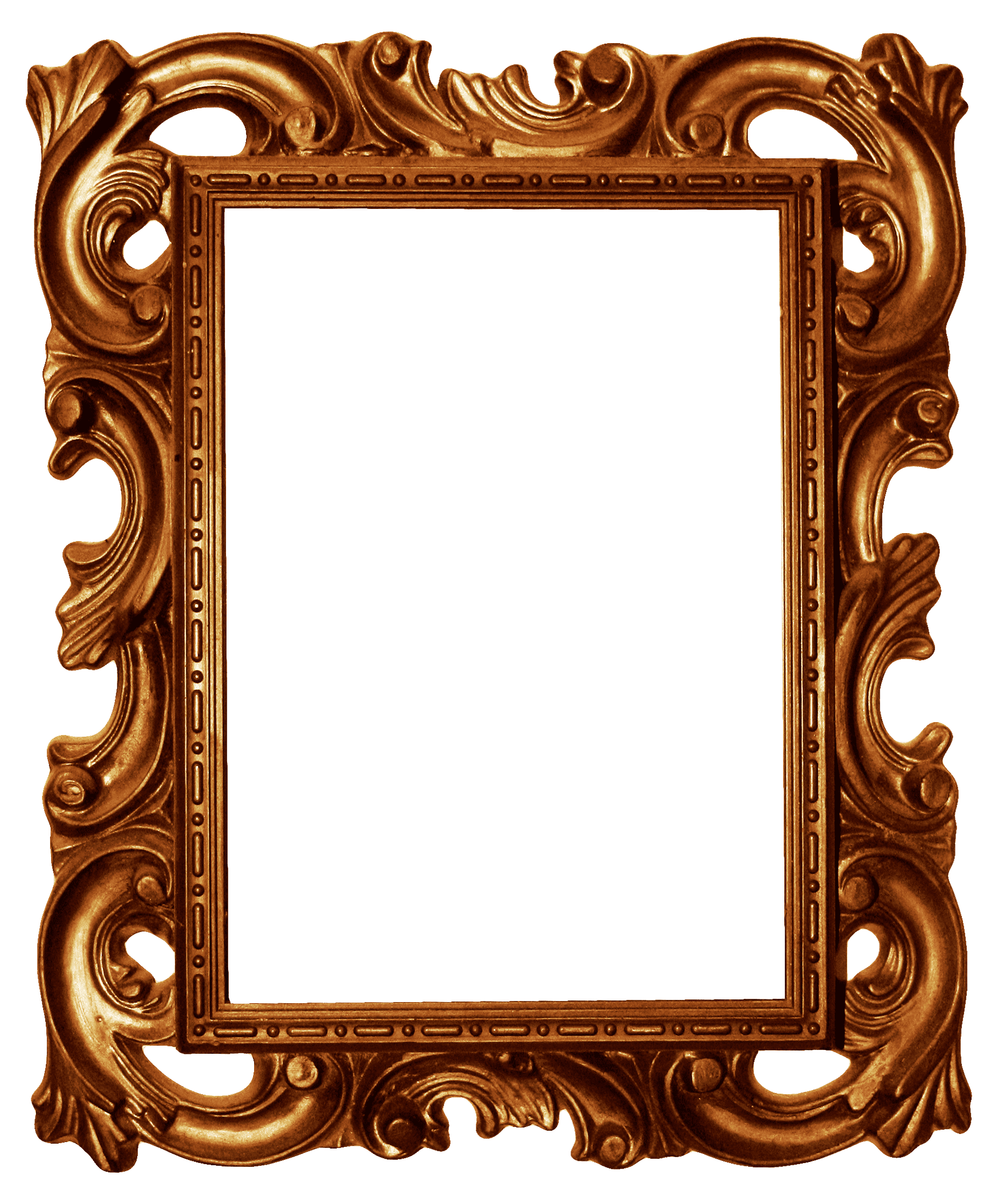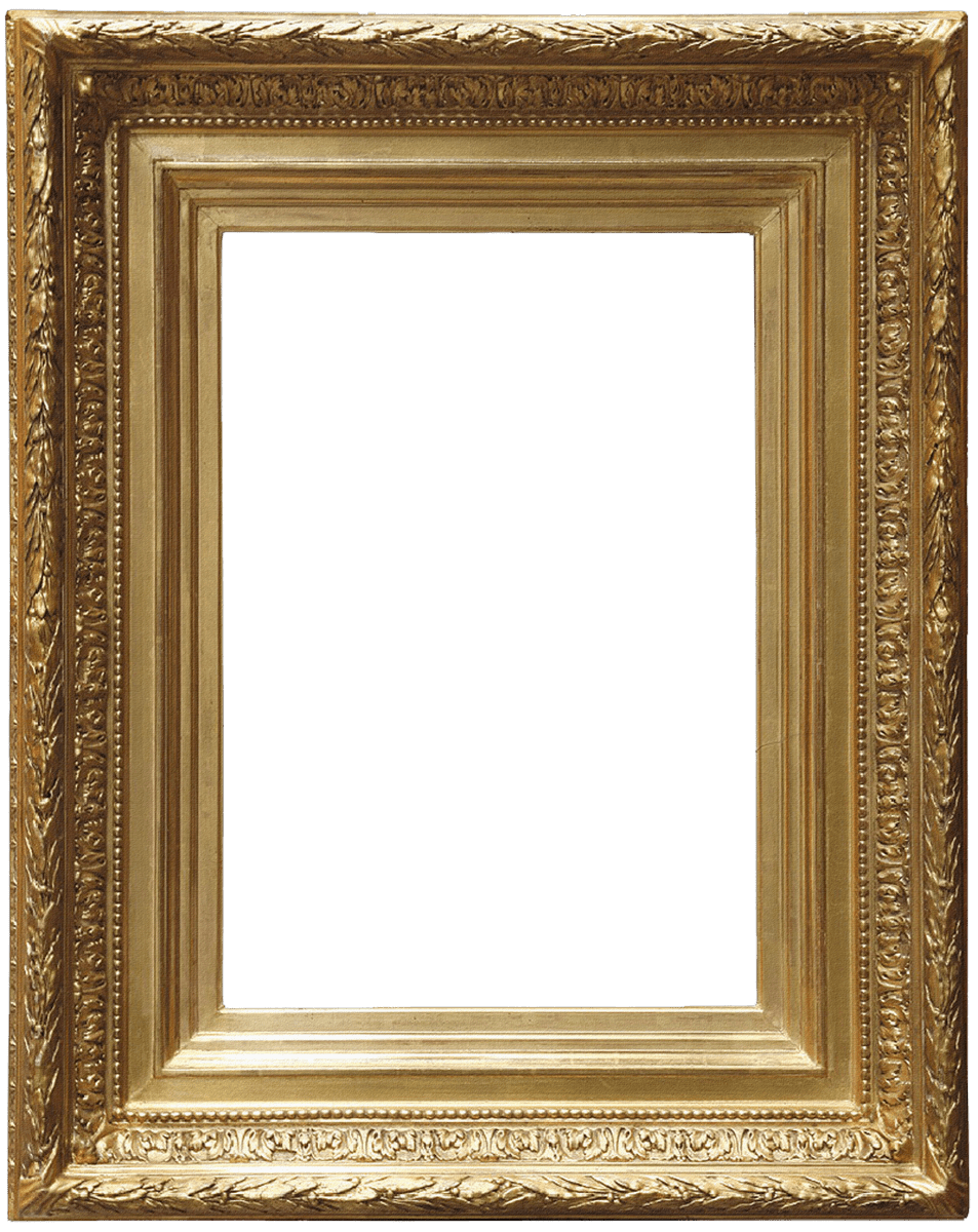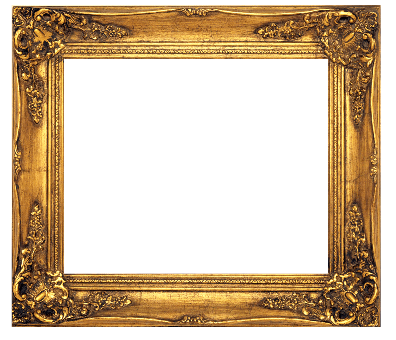 Wide golden picture frame with curly edge