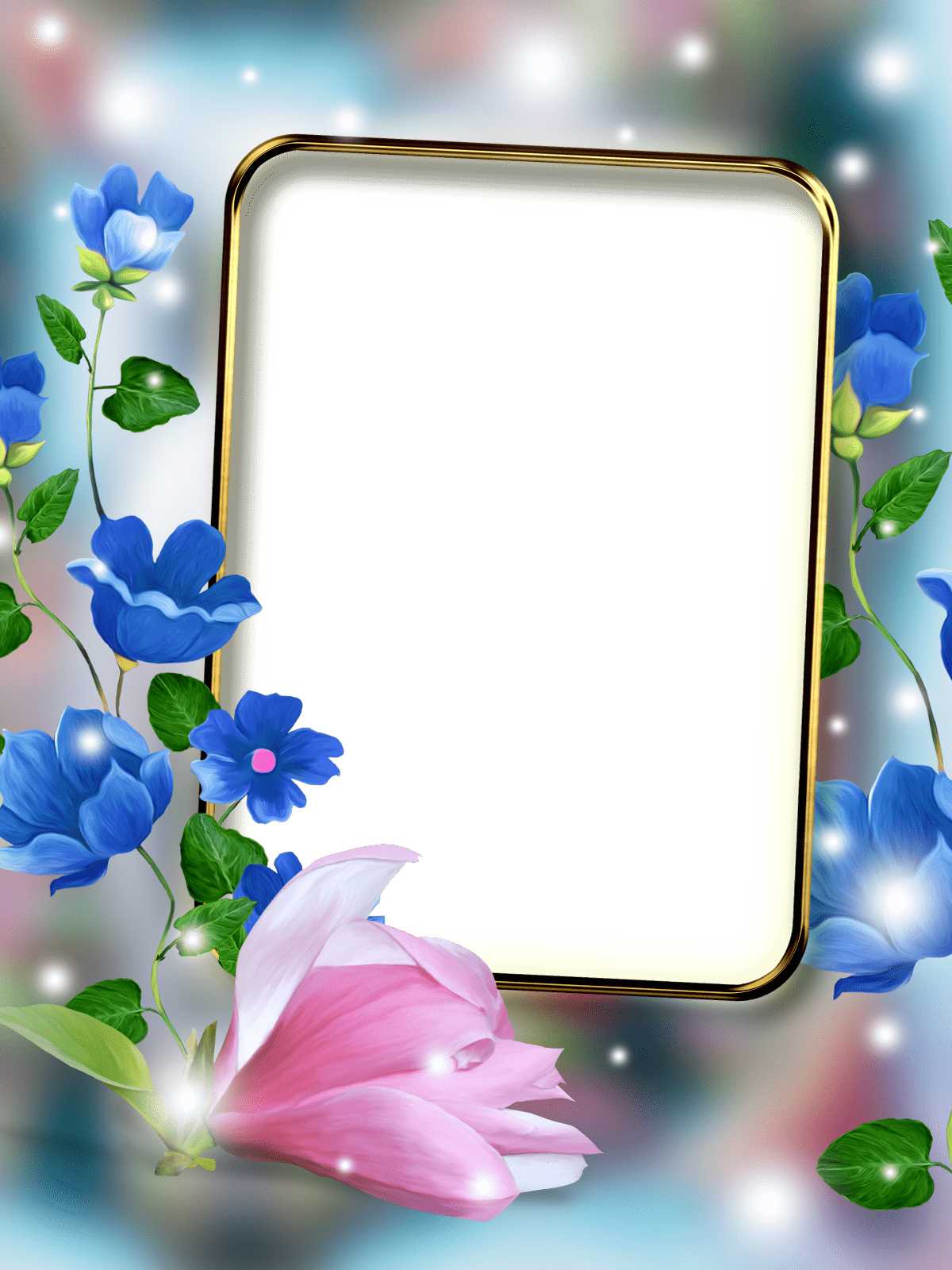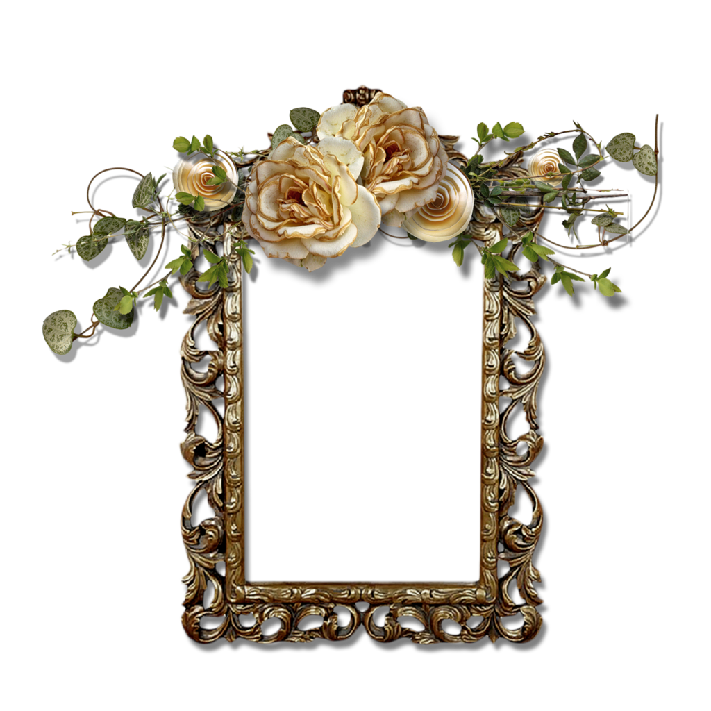 Shiny golden frame with delicate white and pink flowers.