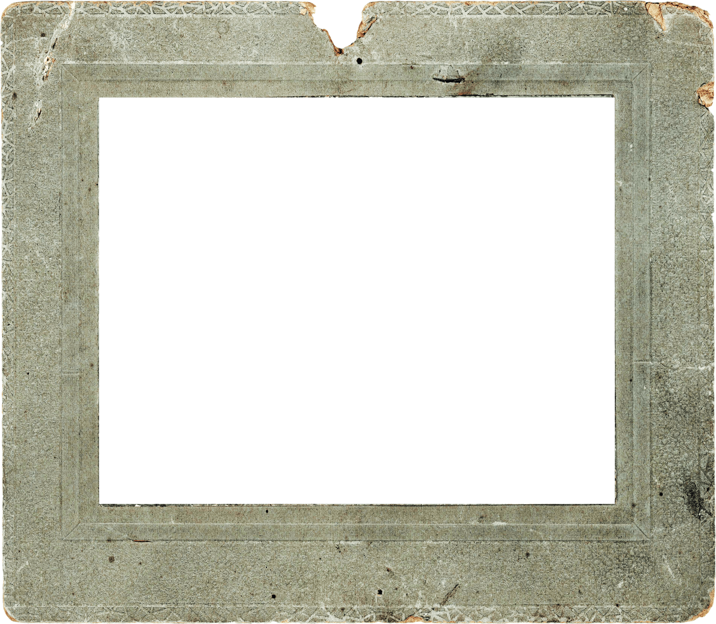 Old gray photo frame made of concrete. Perhaps the frame was found during excavations