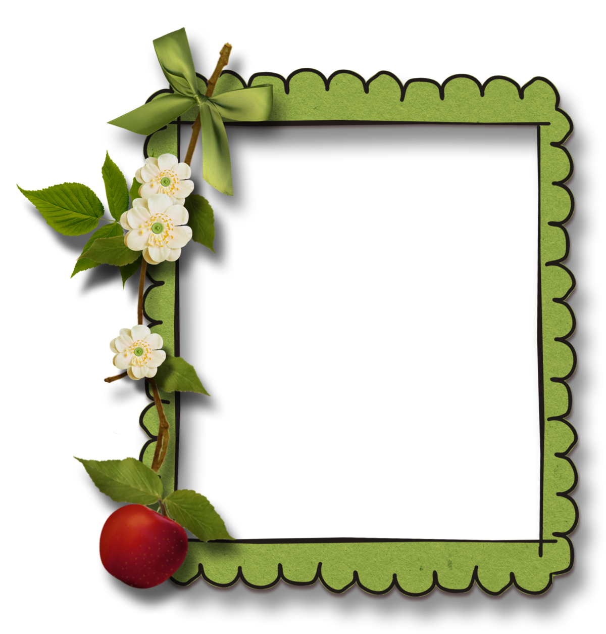Green photo frame with flowers and butterflies