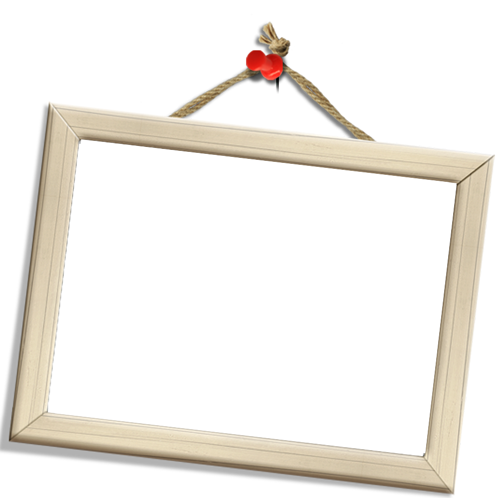 Polaroid photo-style frame attached to the wall with a red push pin