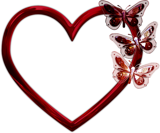 Red heart-shaped photo frame with three butterflies