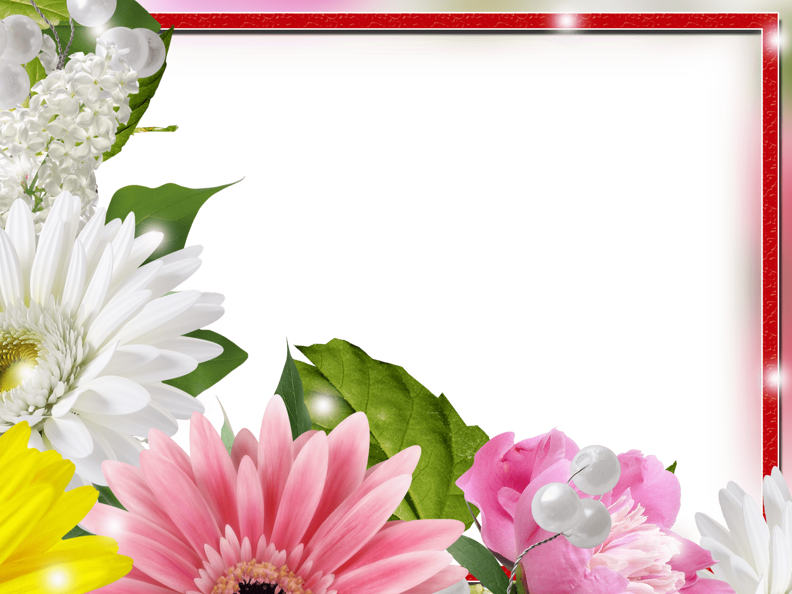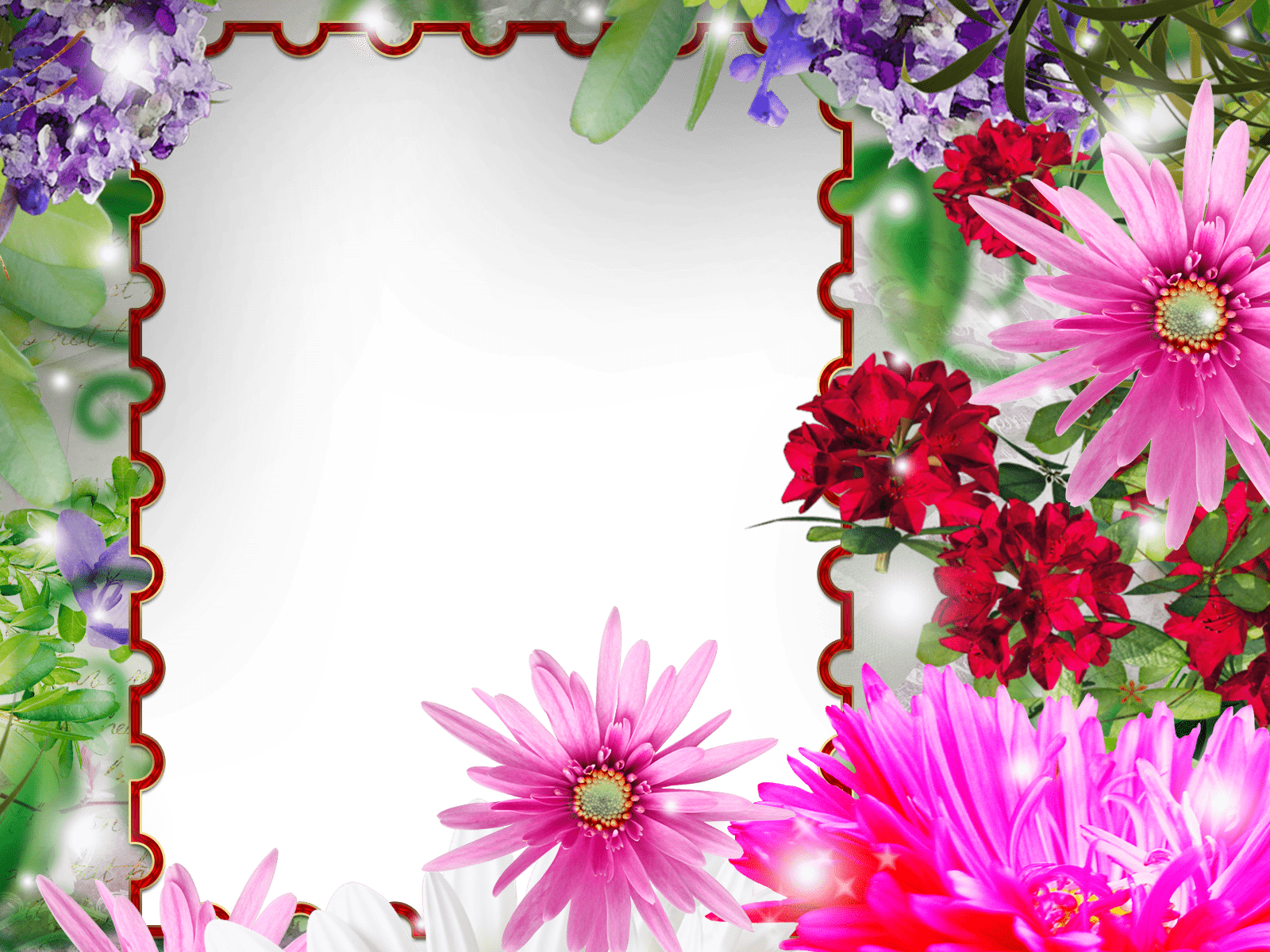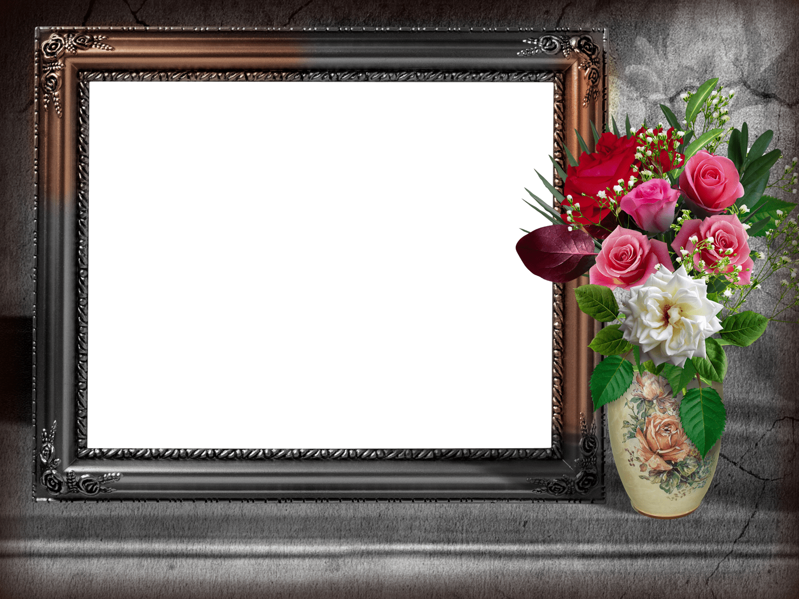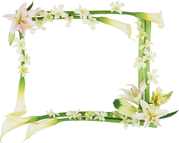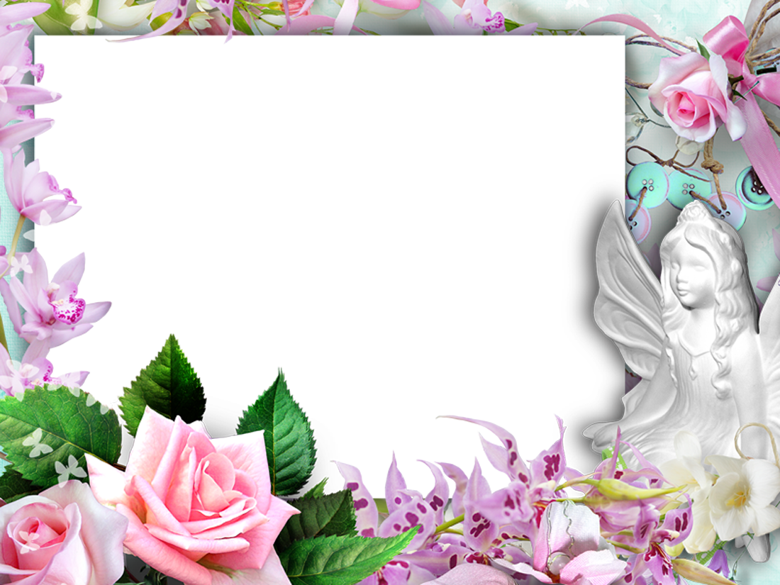 Dieser Fotorahmen ist mit schönen Blumen verschiedener Art verziert.