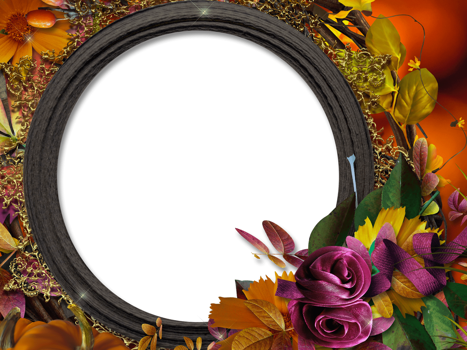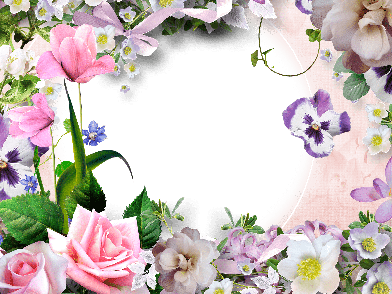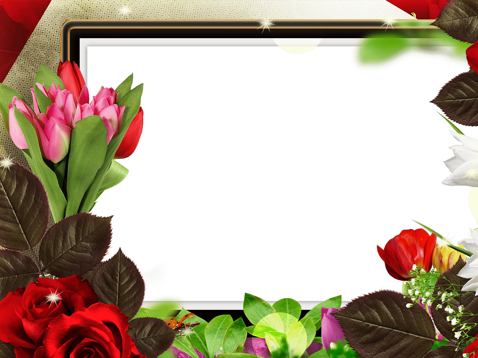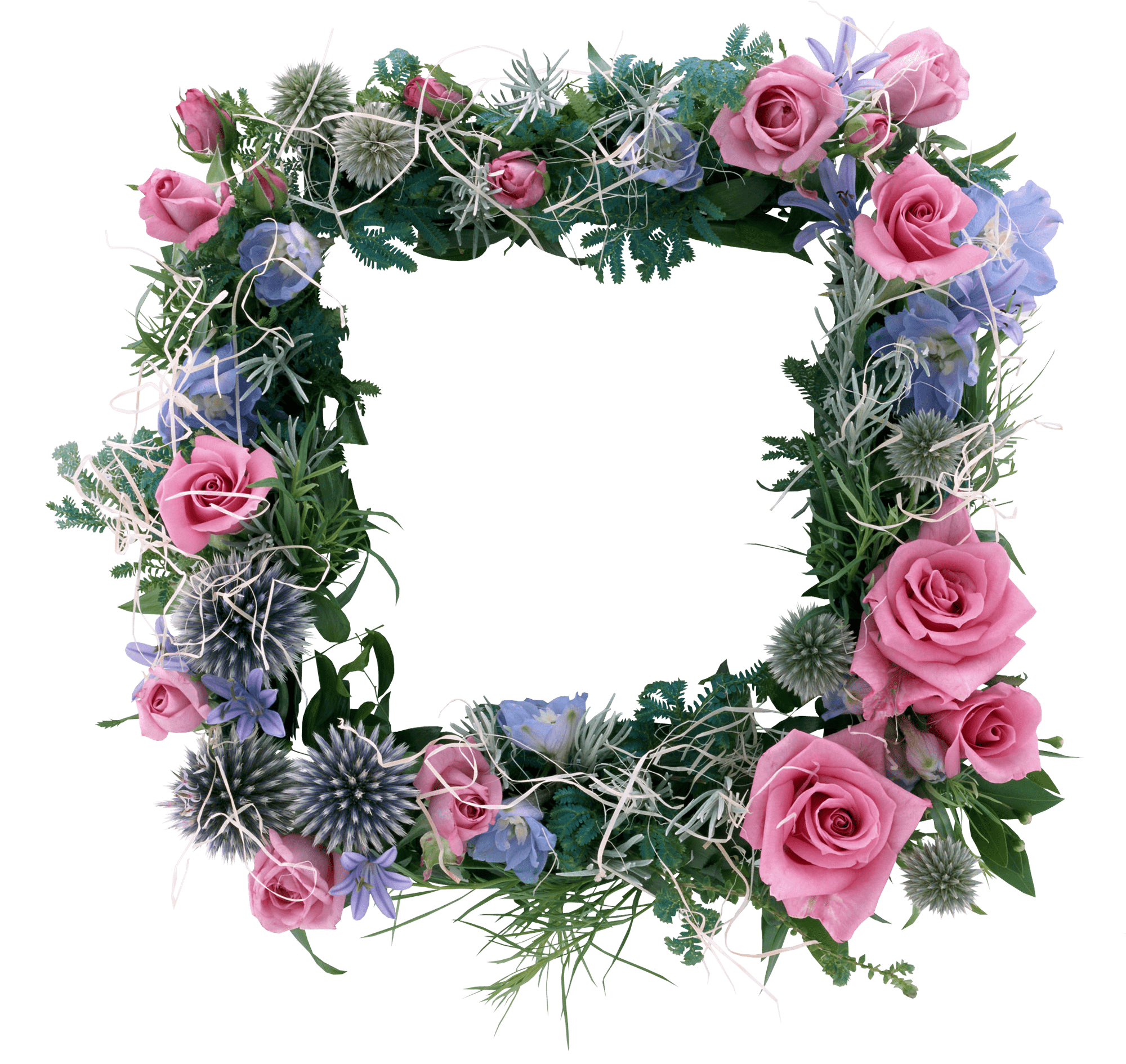 Dieser Fotorahmen ist mit schönen Blumen verschiedener Art verziert.