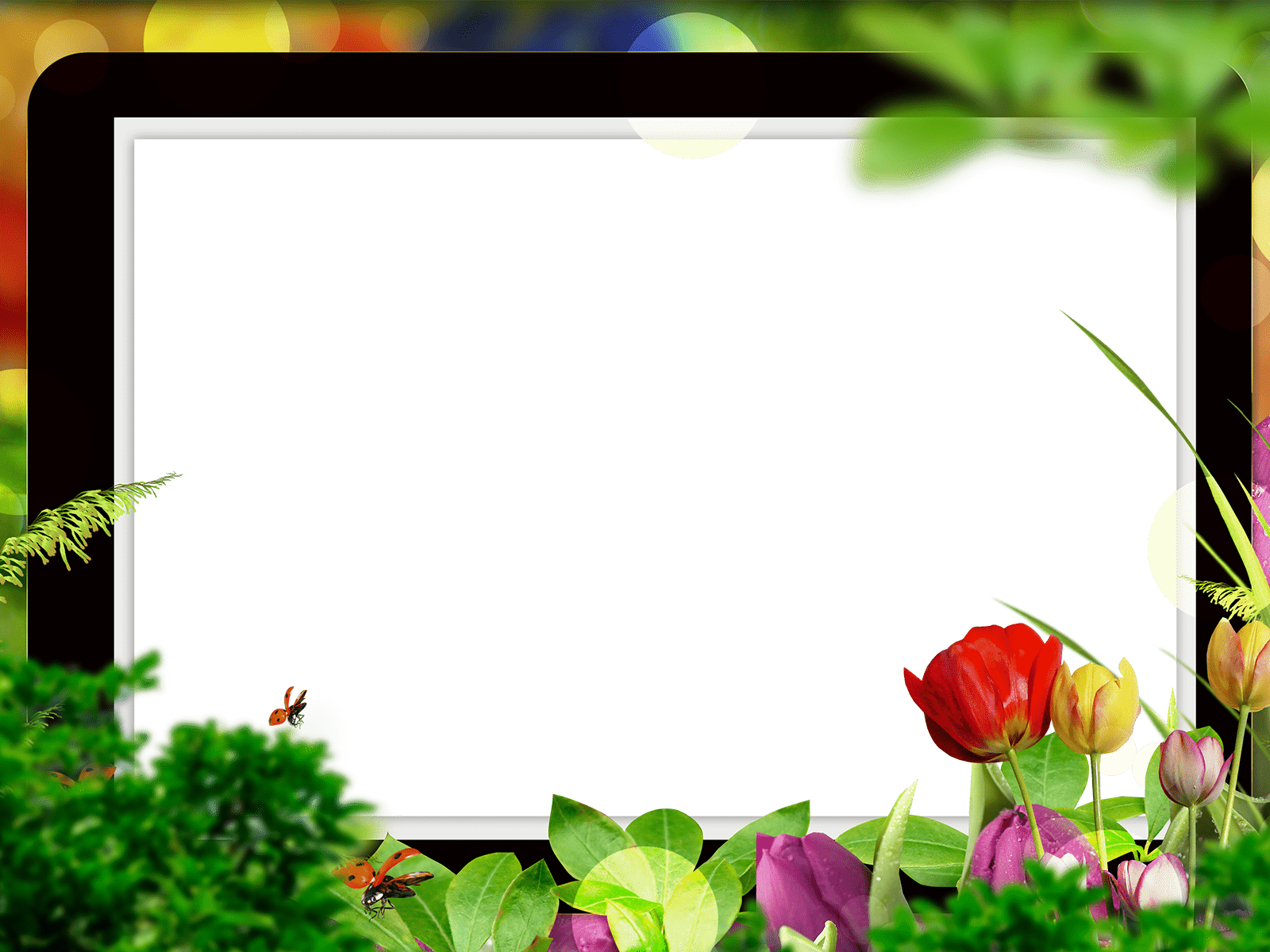 Schwarzer rechteckiger Fotorahmen in Blättern und Blüten.