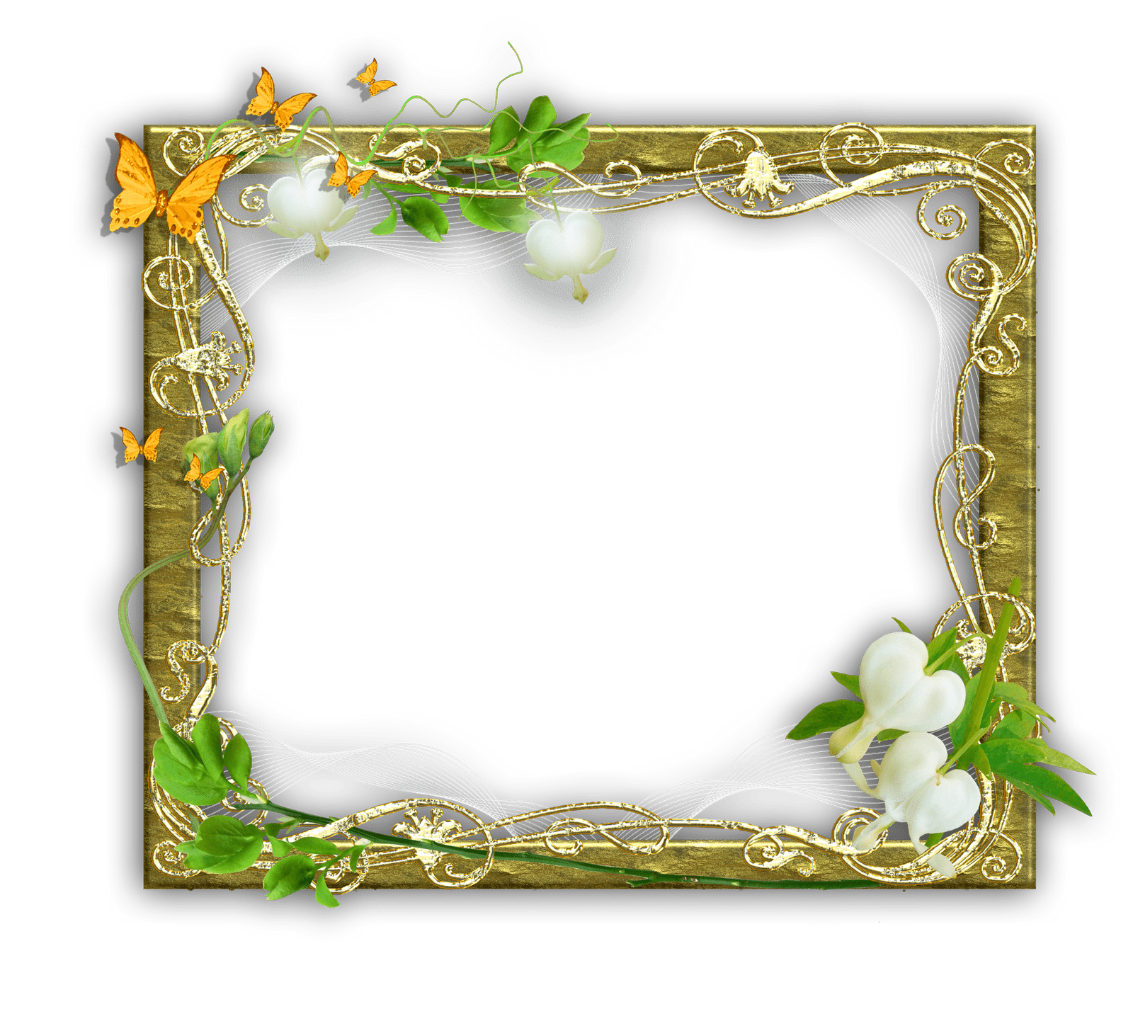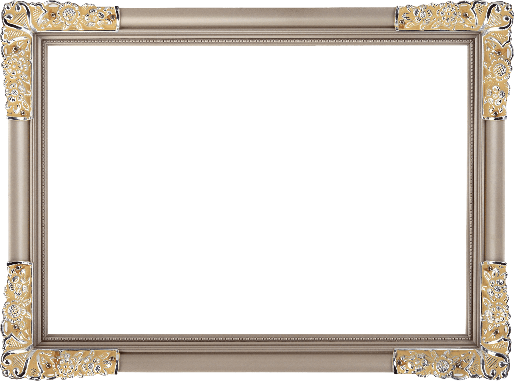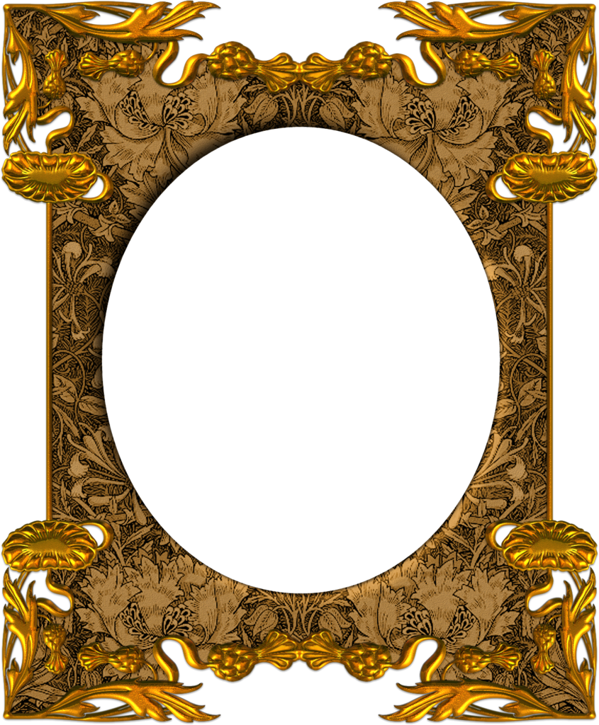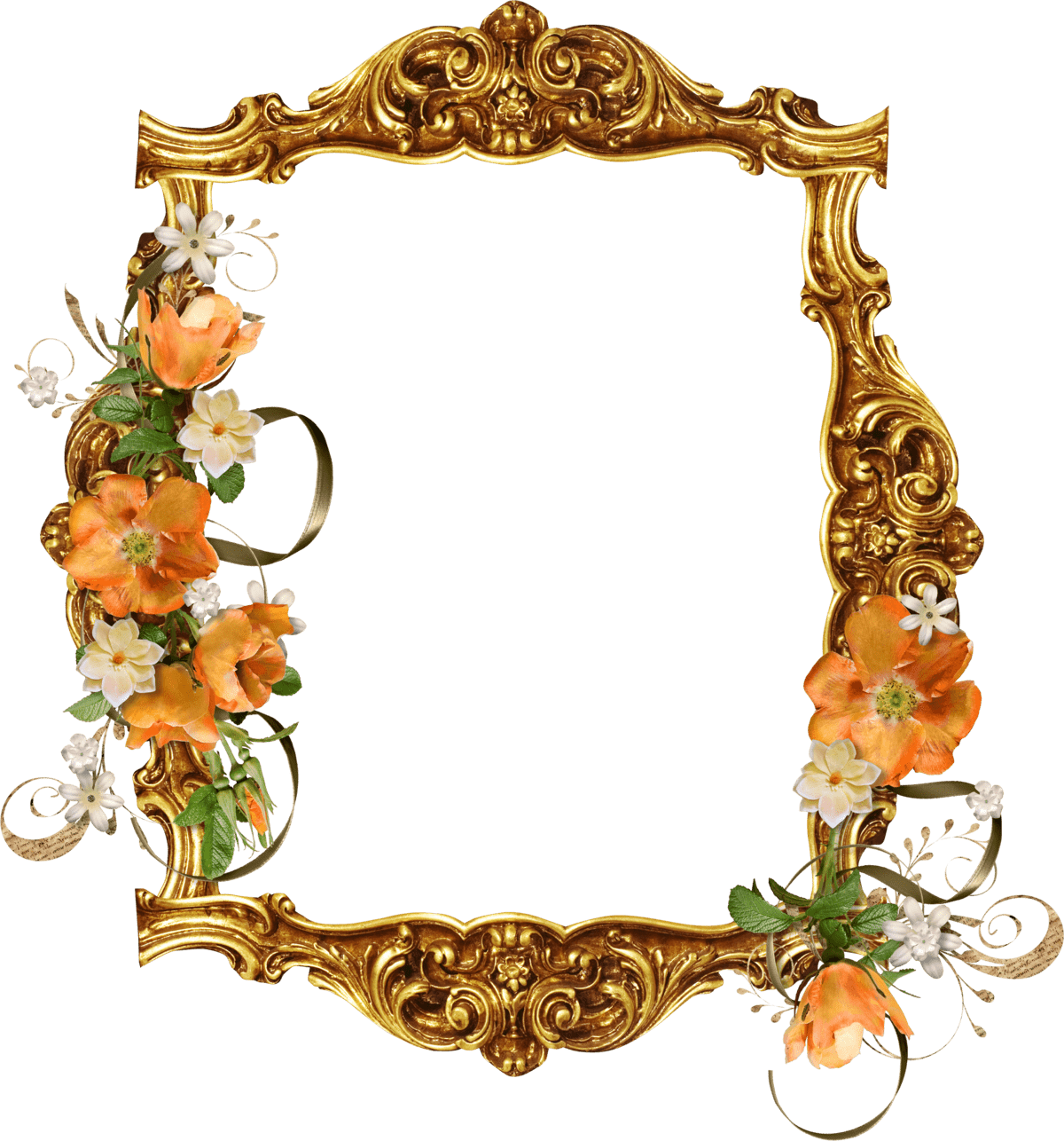 Rechteckiger goldener Fotorahmen mit abgerundeten Kanten und Blumendekor