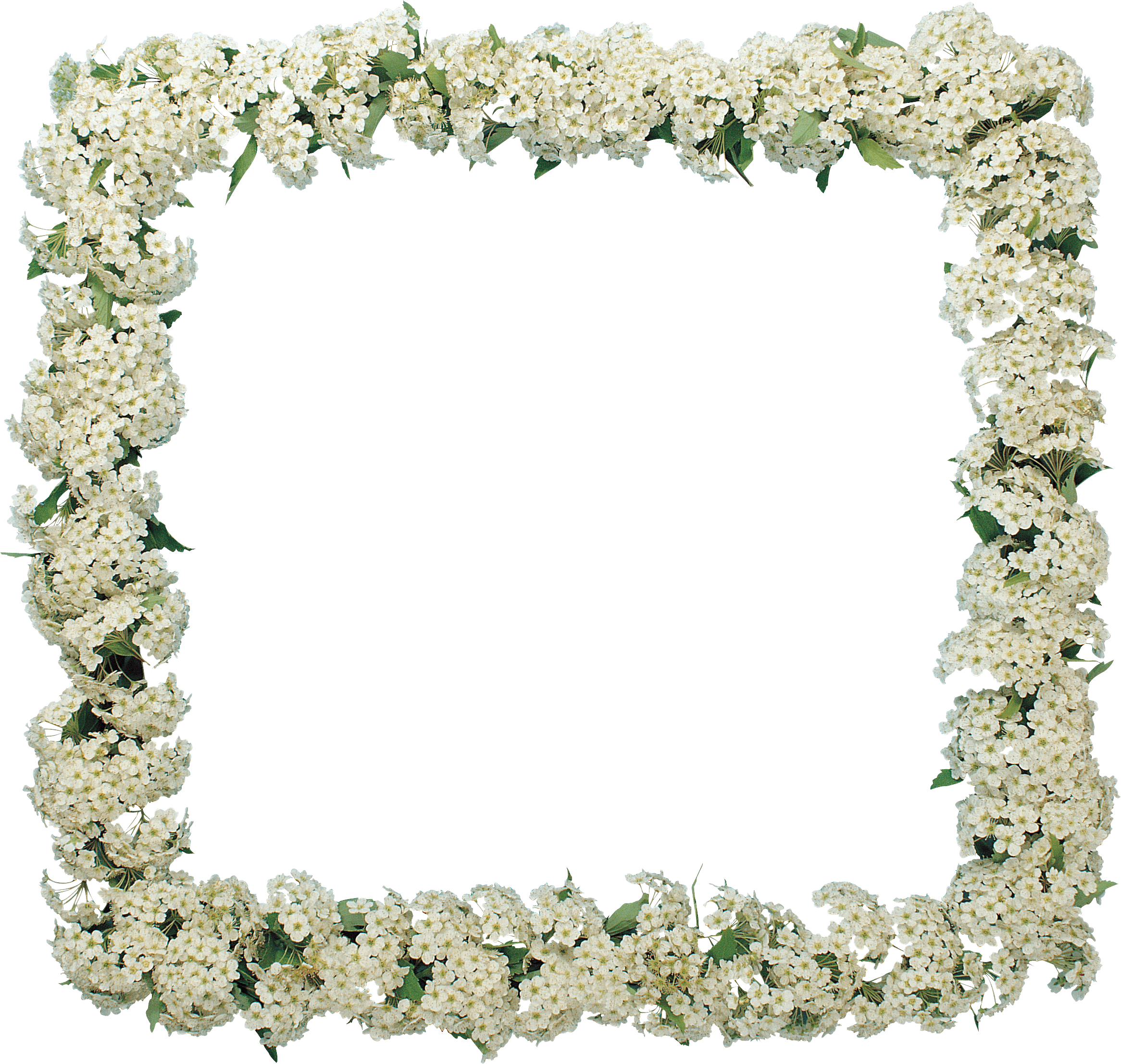 Fotorahmen aus vielen weißen Blütenständen mit grünen Blättern