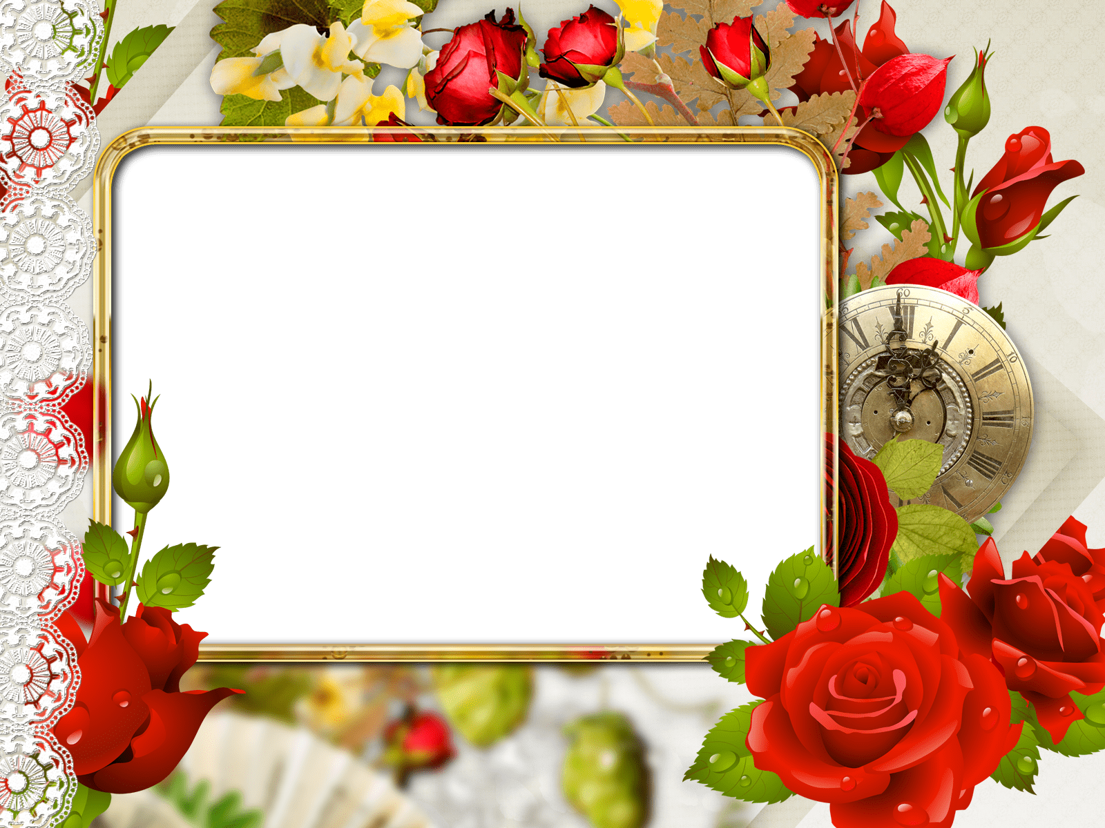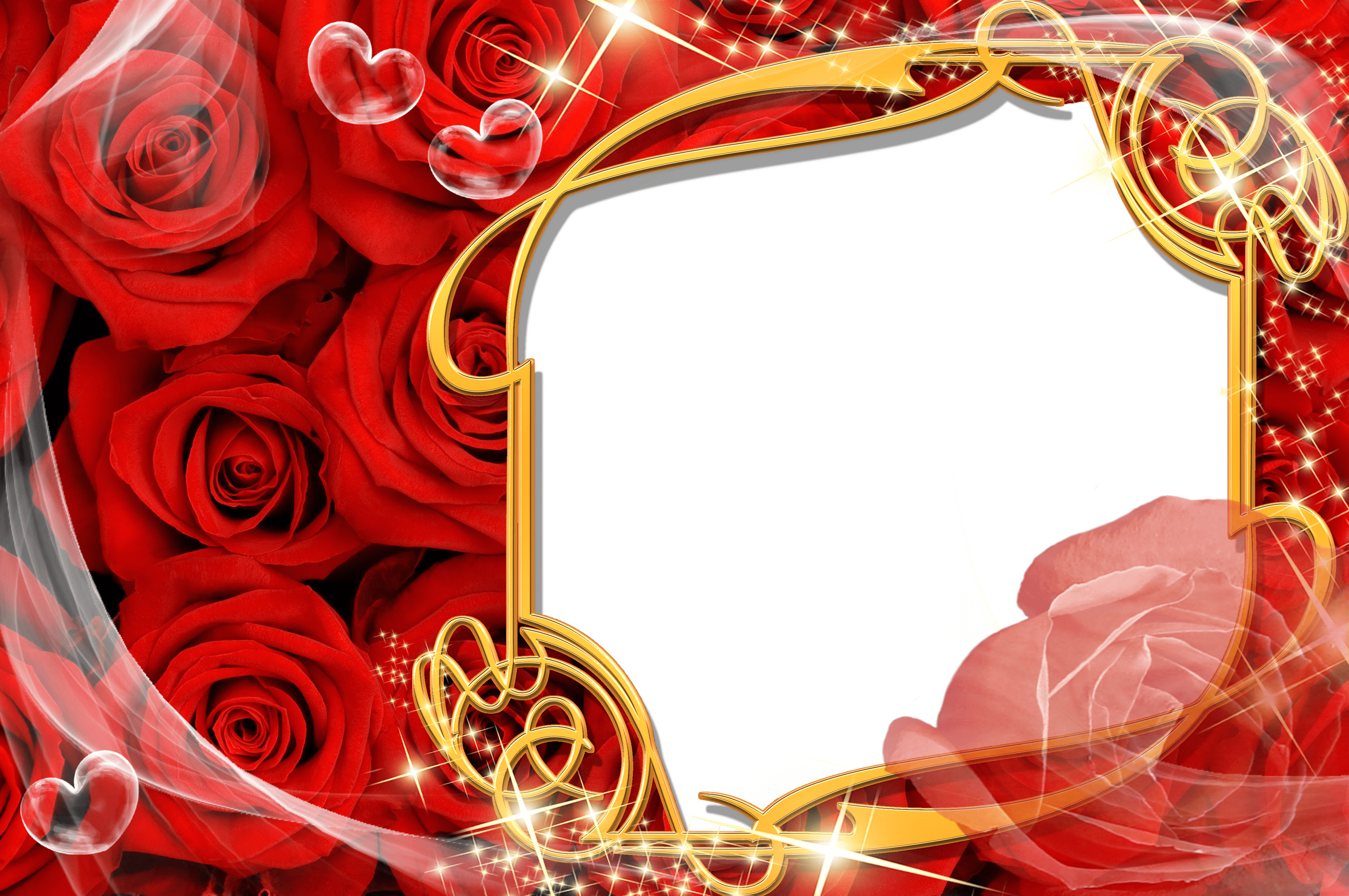 Hintergrund für ein Foto mit einem goldenen Rahmen und roten Rosen