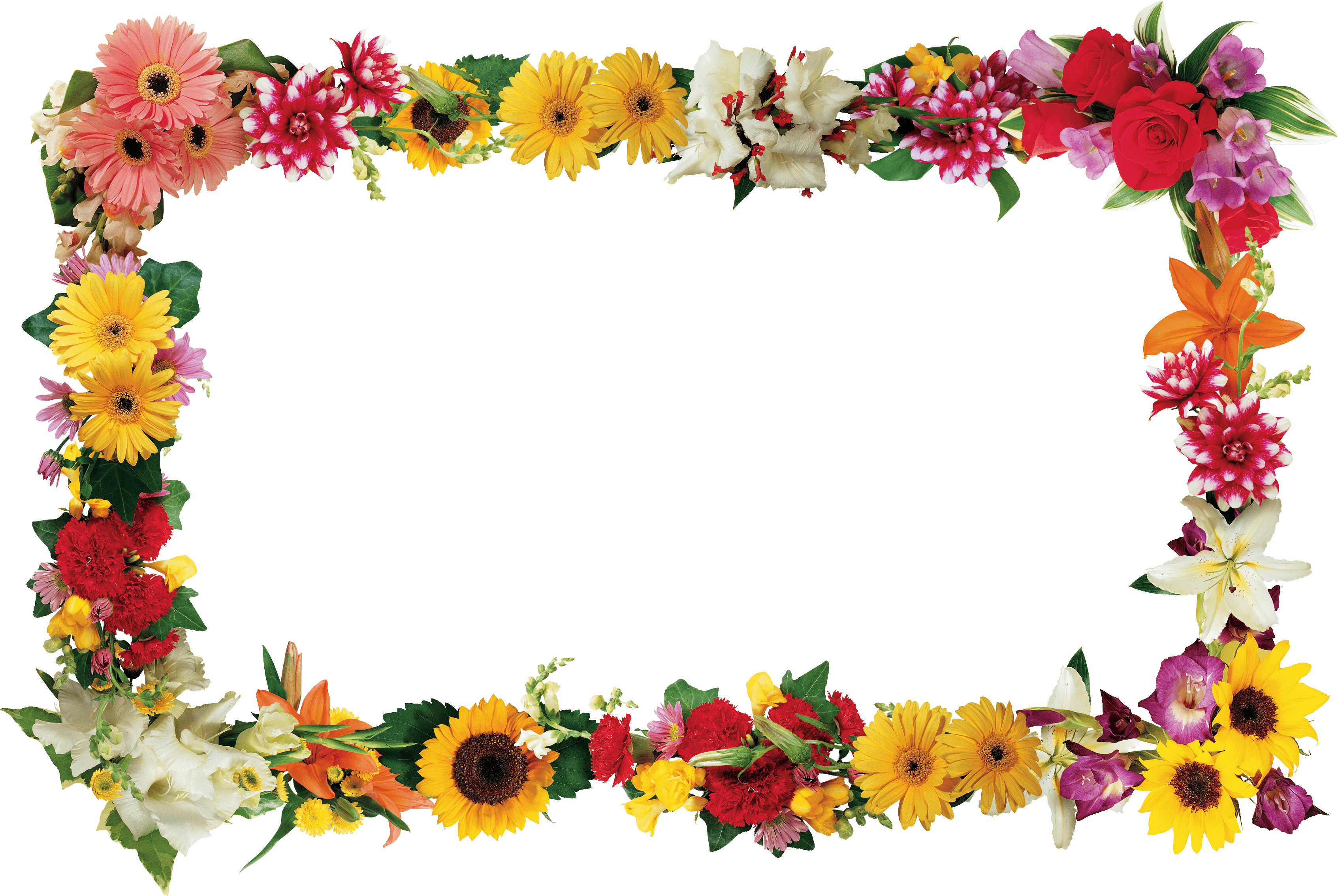 Ein rechteckiger Rahmen aus Blumen verschiedener Arten. Für Sommerfoto
