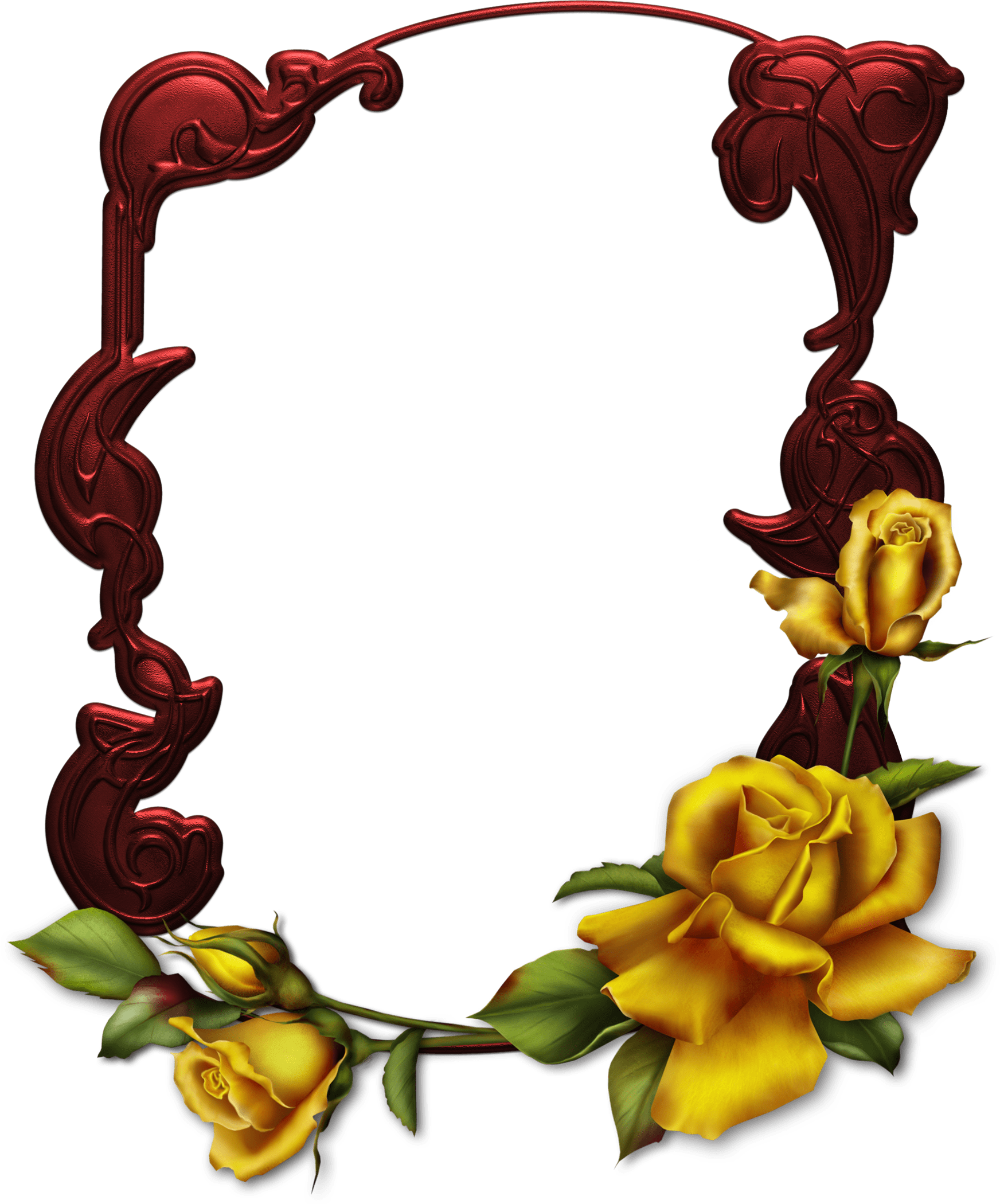 Ungewöhnlicher roter Fotorahmen verziert mit gelben Rosen