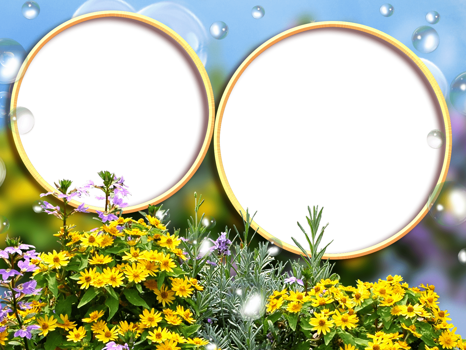 Zwei runde Fotorahmen mit leuchtend gelben Blüten.