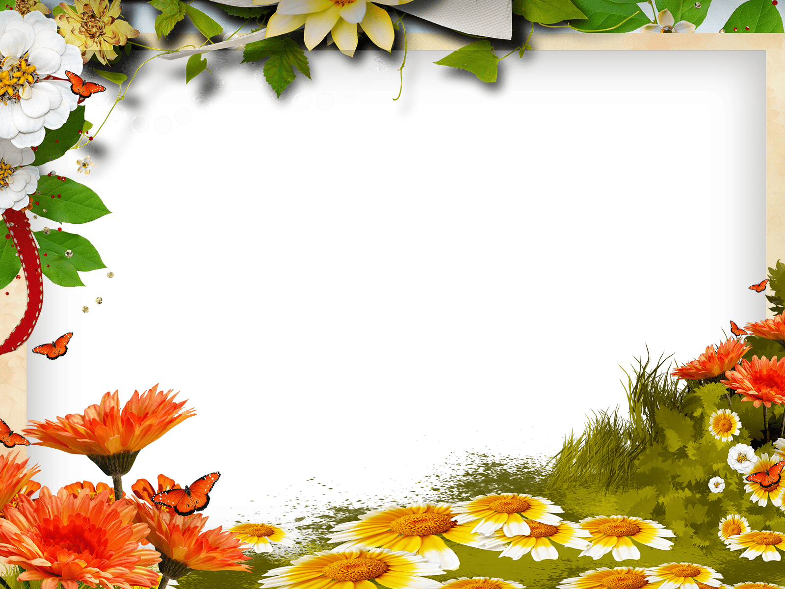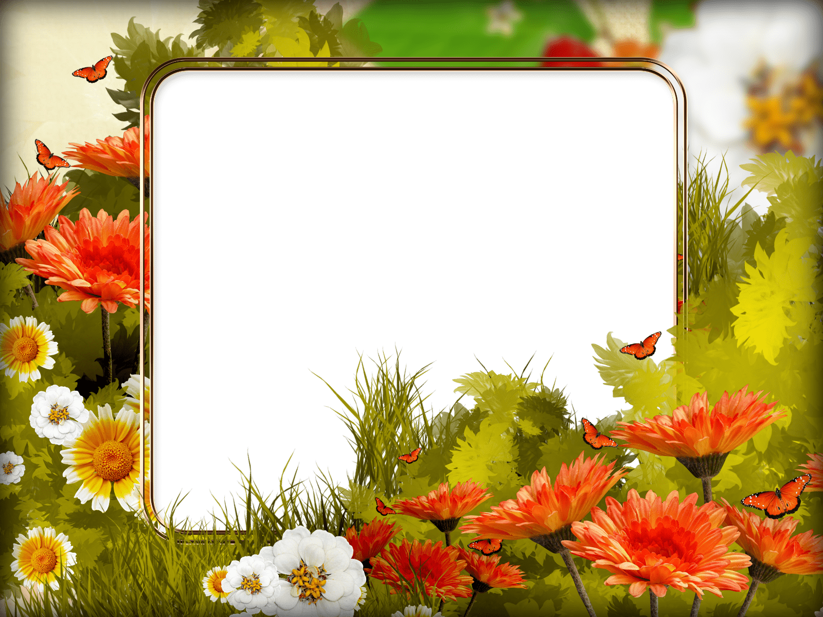Grünes Gras und leuchtende Blumen, die diesen Fotorahmen schmücken, werden Sie immer an den Sommer erinnern