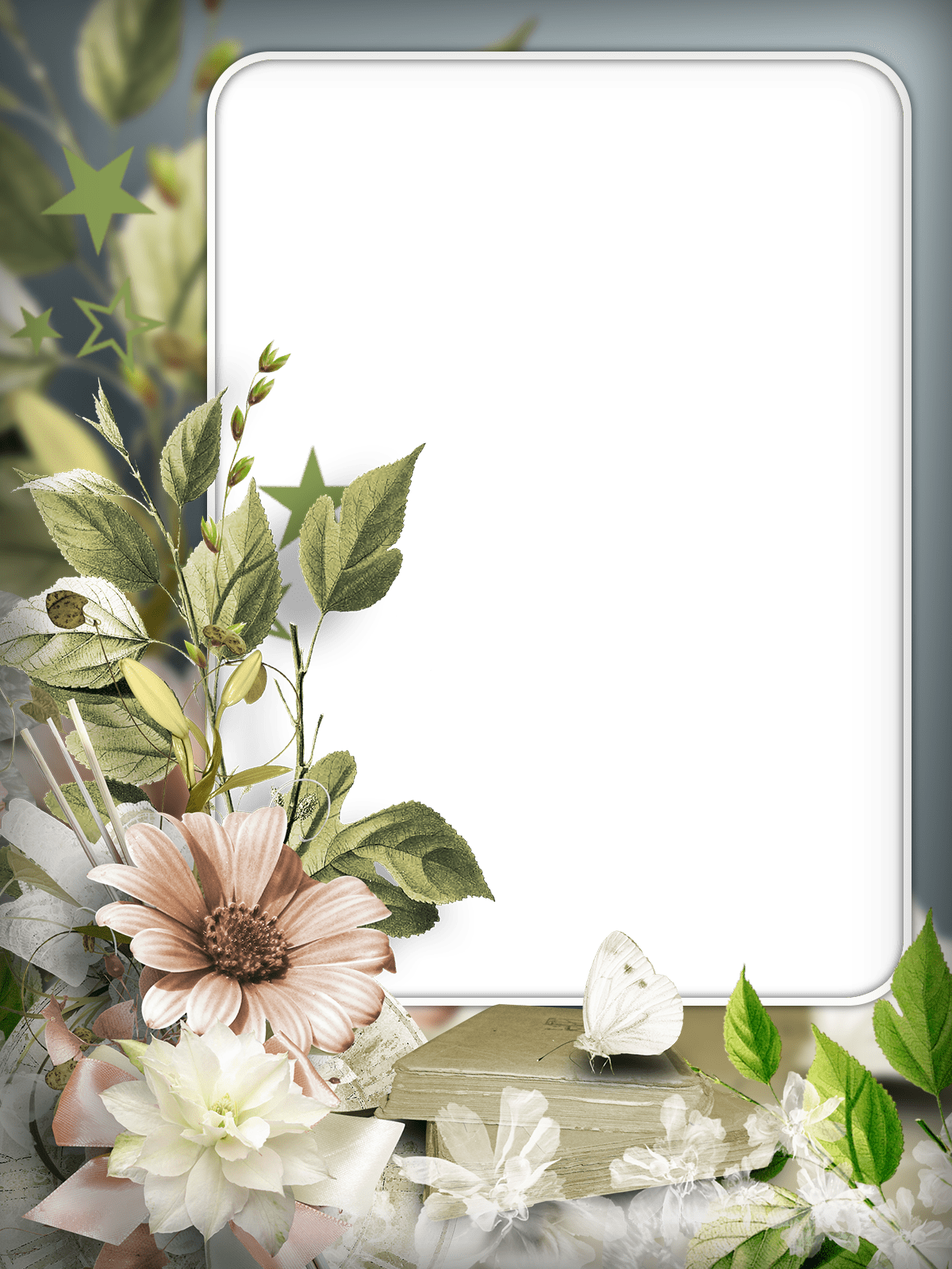 Grüner Fotorahmen mit Blumen und Schmetterlingen