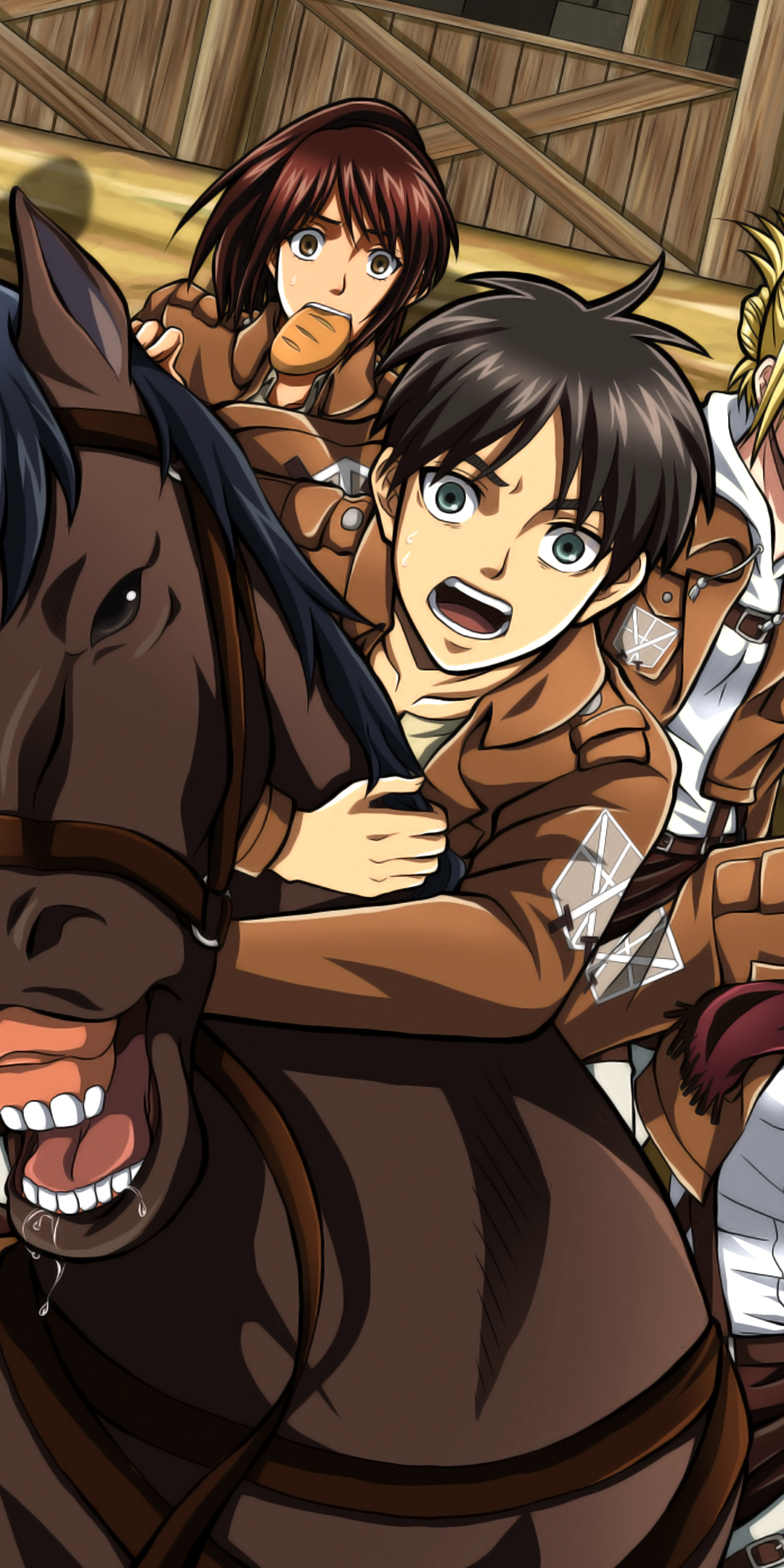 Nell’angolo in basso a sinistra dello schermo del tuo smartphone, Eren รจ in piedi e sta salutando. I suoi amici sono dietro di lui.