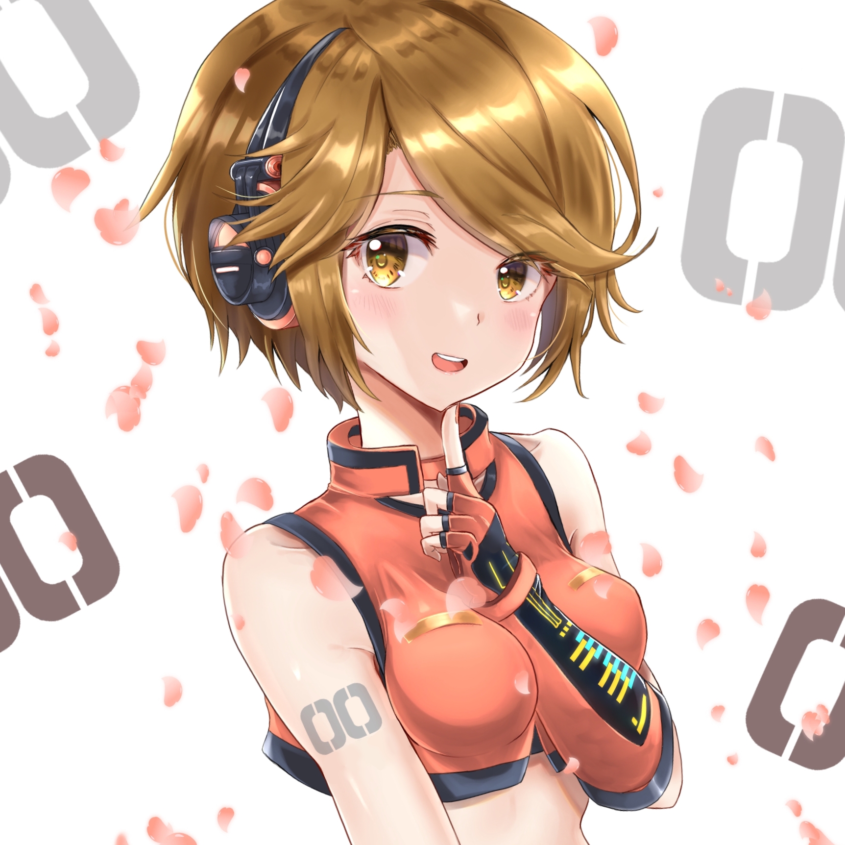巡音ルカはヘッドホンでビートを聴き、音楽を吹き込みます