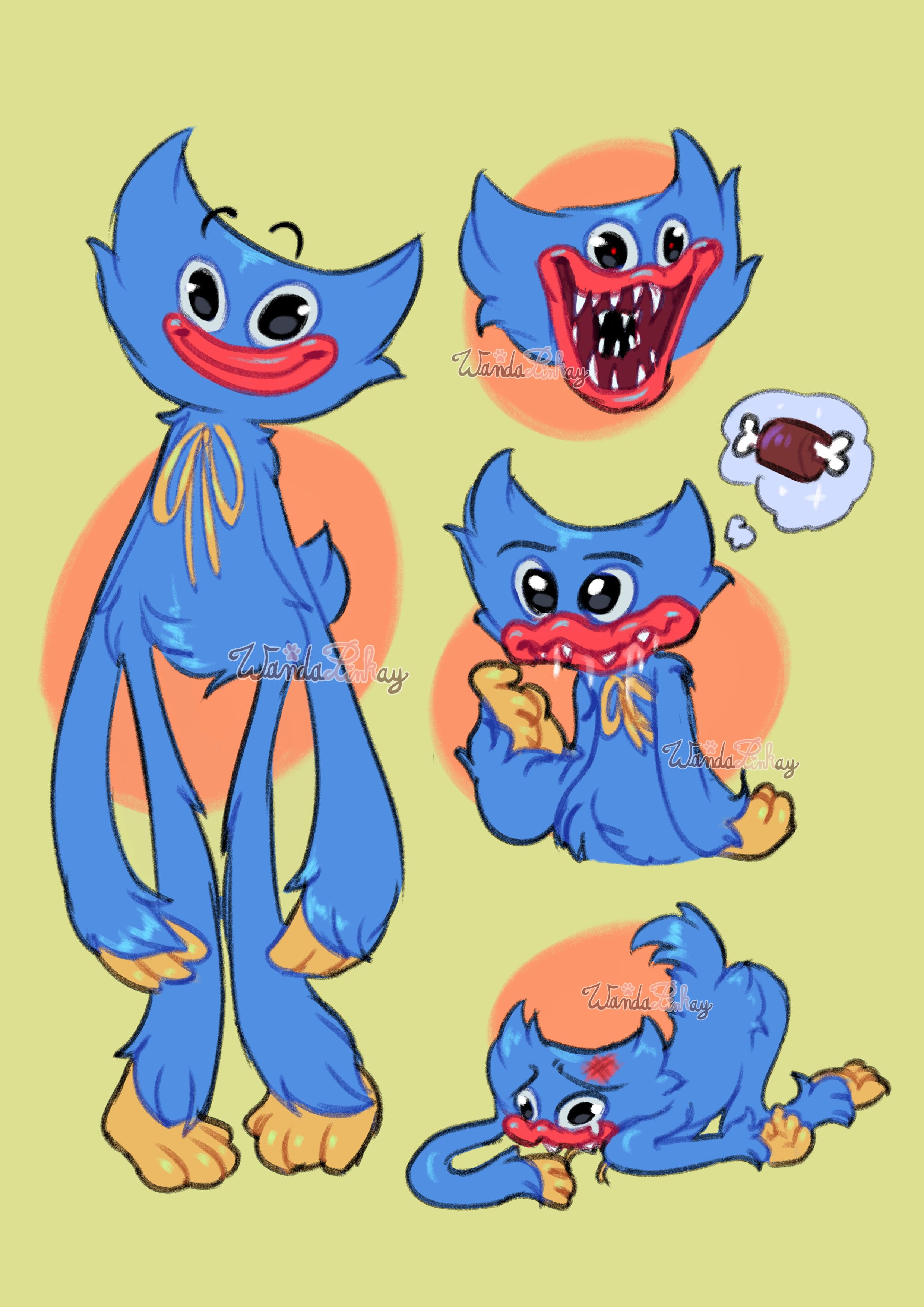 ハギーワギーは、このファンアートでさまざまな感情を持った変人として描かれています。