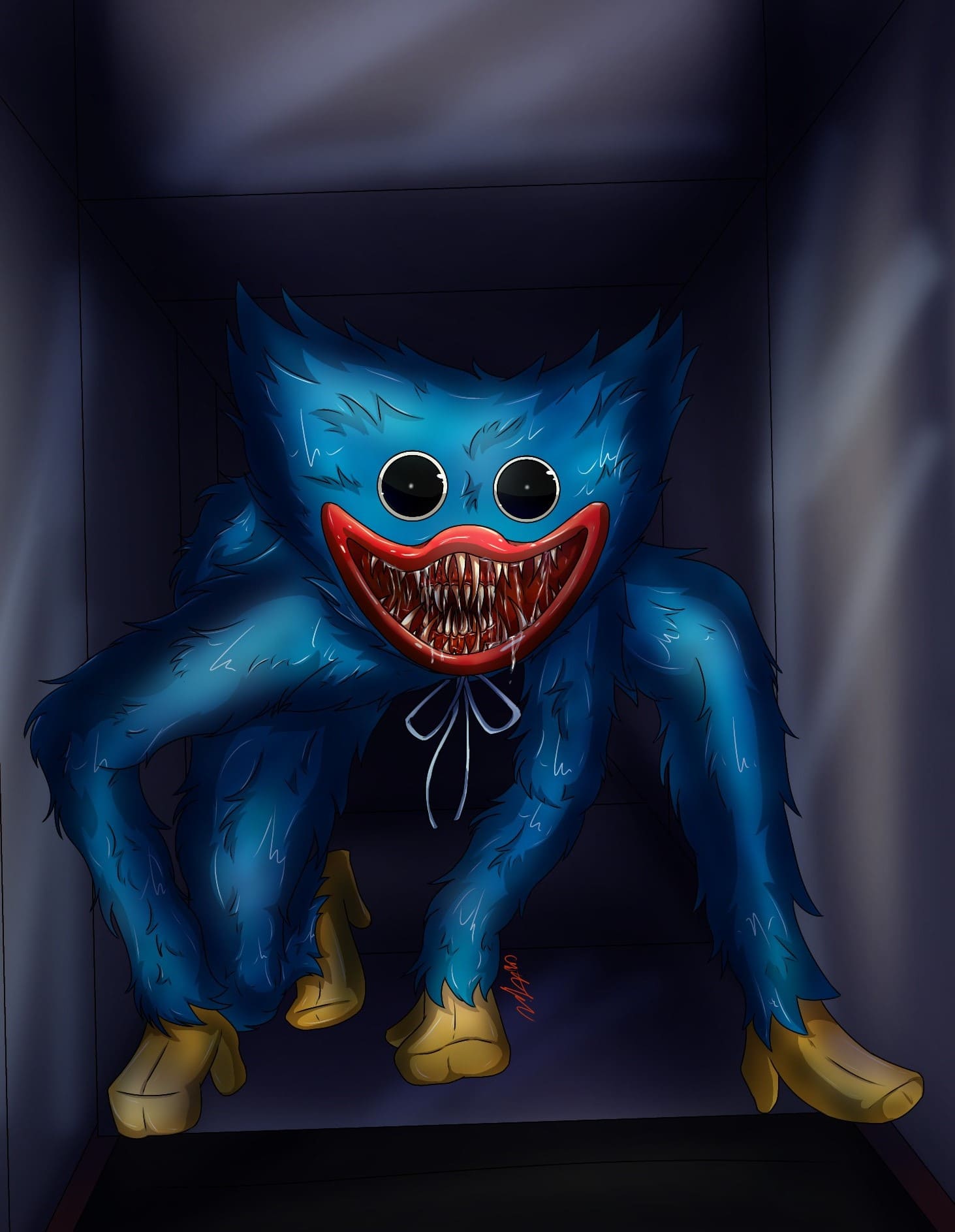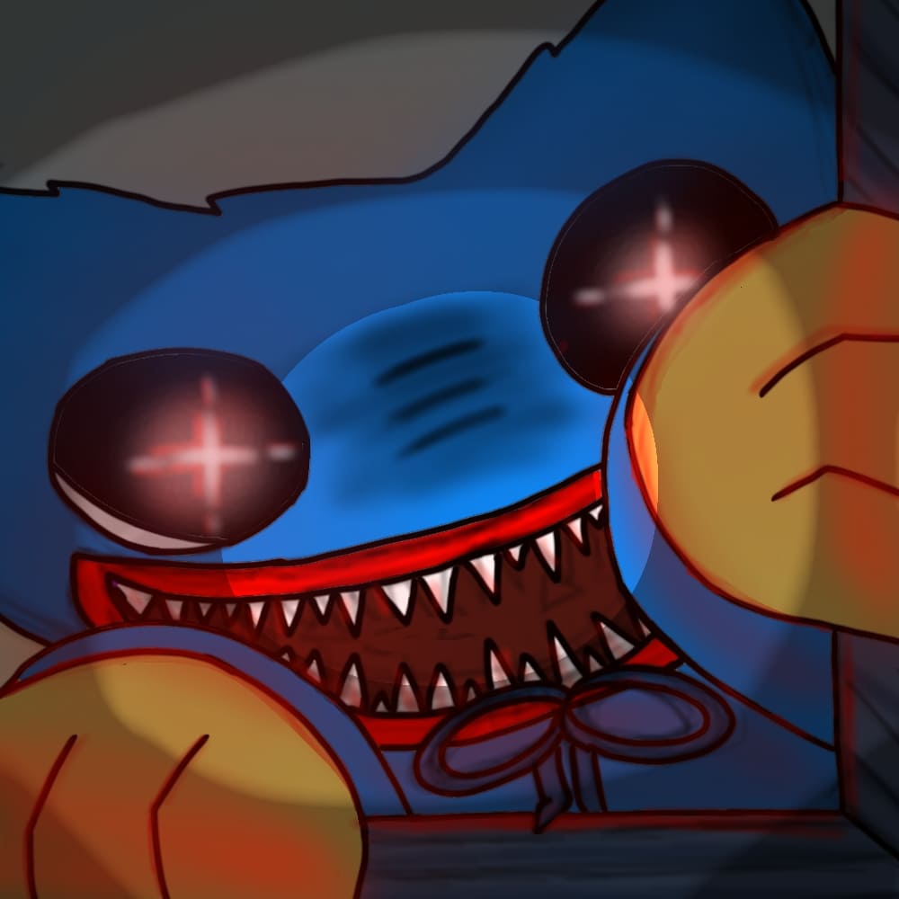 暗い部屋での悪質なぬいぐるみのファンアート、ハギー・ワギーは攻撃する準備ができています。ゲームポピープレイタイムの愛好家のためのプロフィール写真