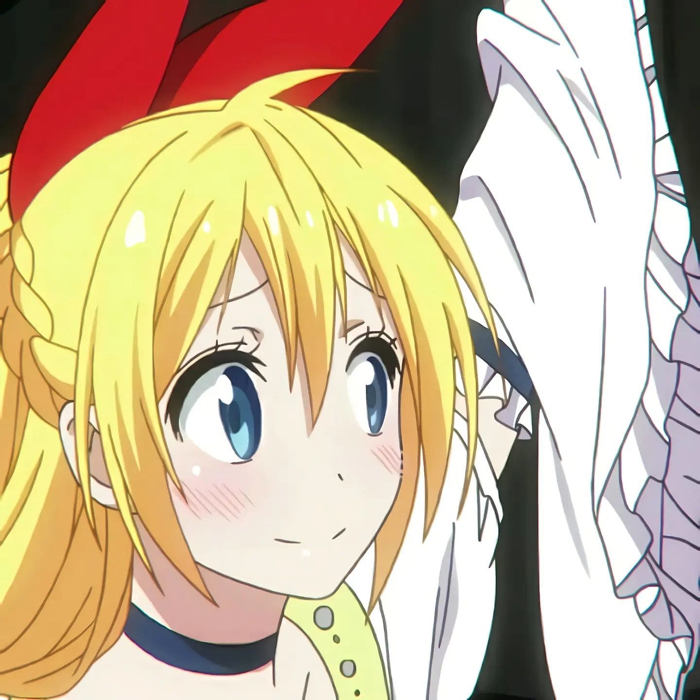 アニメ「ニセコイ」の大きな青い目と髪の毛にクリップが付いたブルネットのかわいいブロンド