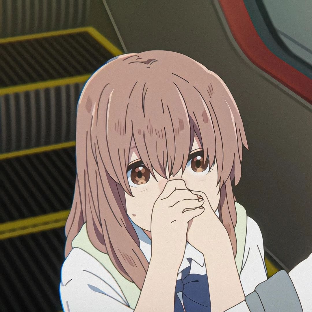 運命の難しい少女が石田将也を興奮させて見つめるアニメ「VoiceShape」のフレーム