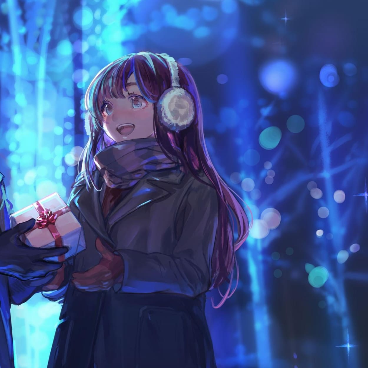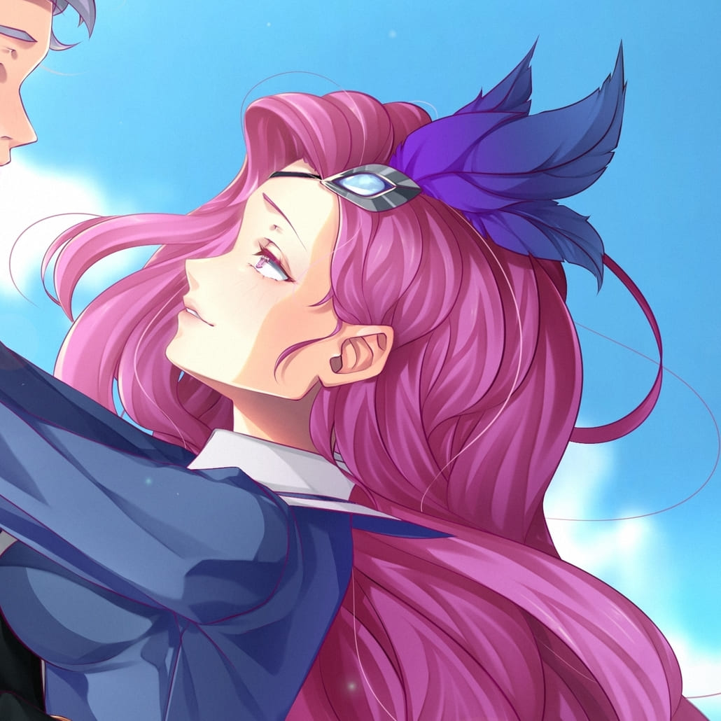 アニメヒロインの珍しいメイクの女の子がパートナーに微笑む