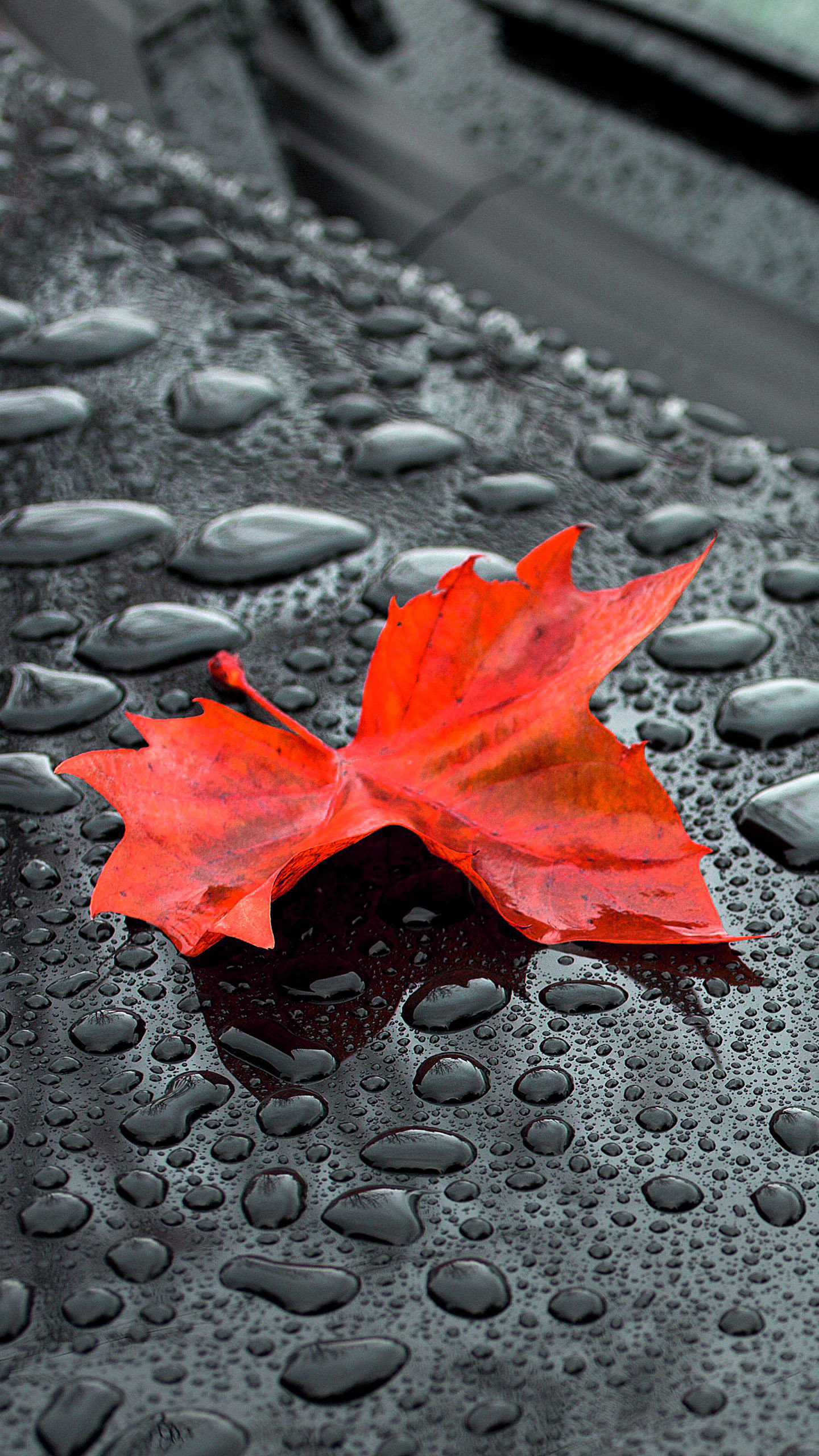 Mokre liście z bliska będą dobrze wyglądać na ekranie smartfona