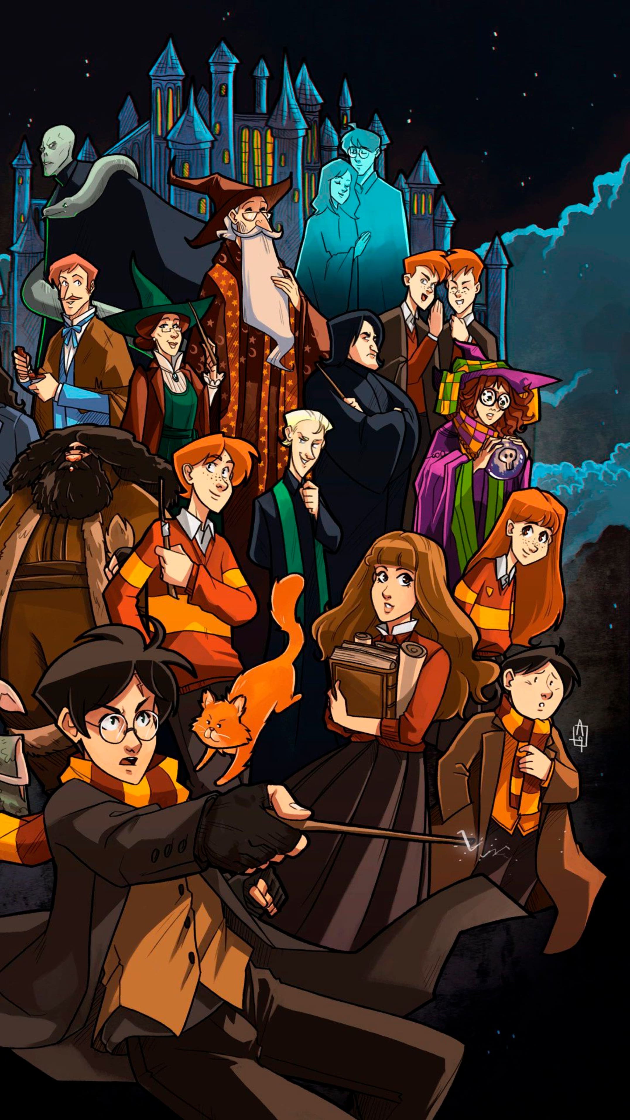Harry Potter i jego drużyna w walce z ciemnymi siłami. 4k mobilna tapeta