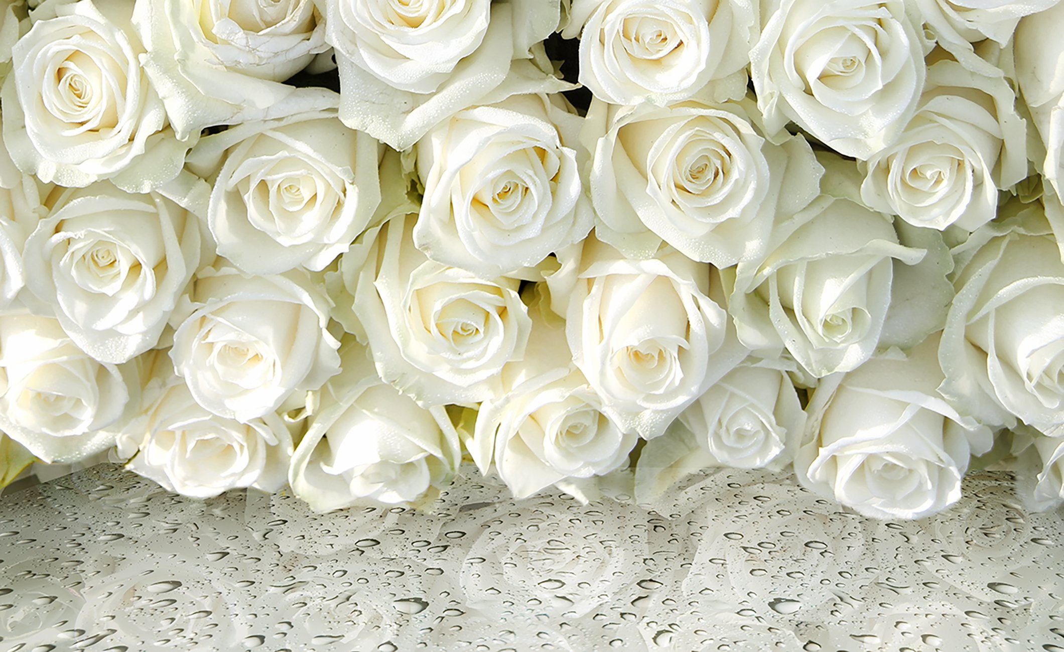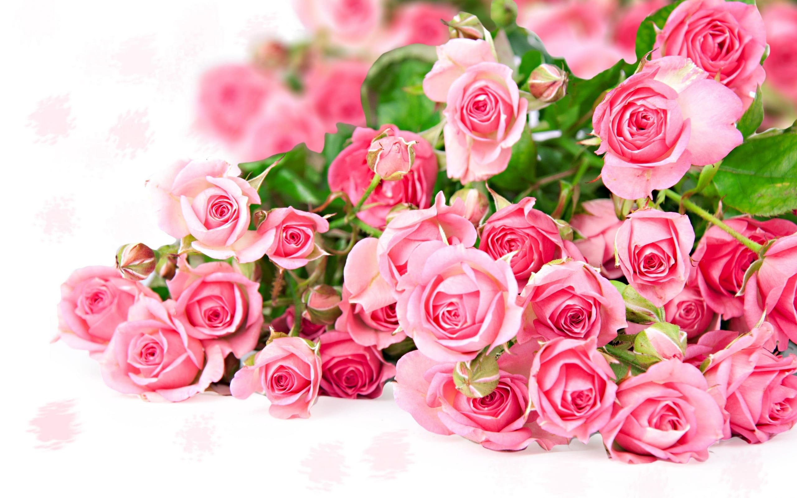 O brilho dessas rosas foi artificialmente aprimorado, mas esse buquê ainda é muito bonito. Fundo branco