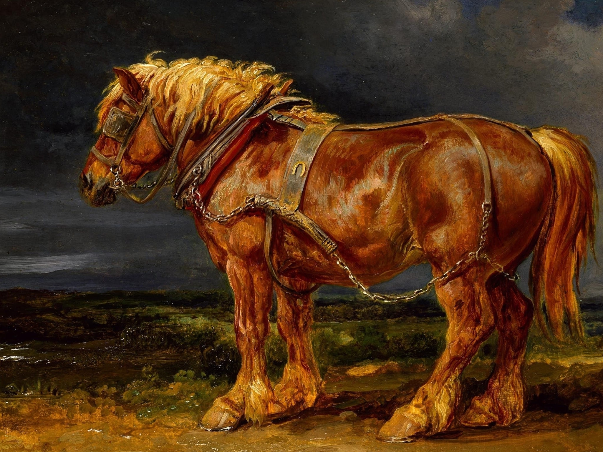 Одинокая лошадь бредет по высокой траве в неестественном желтом свете