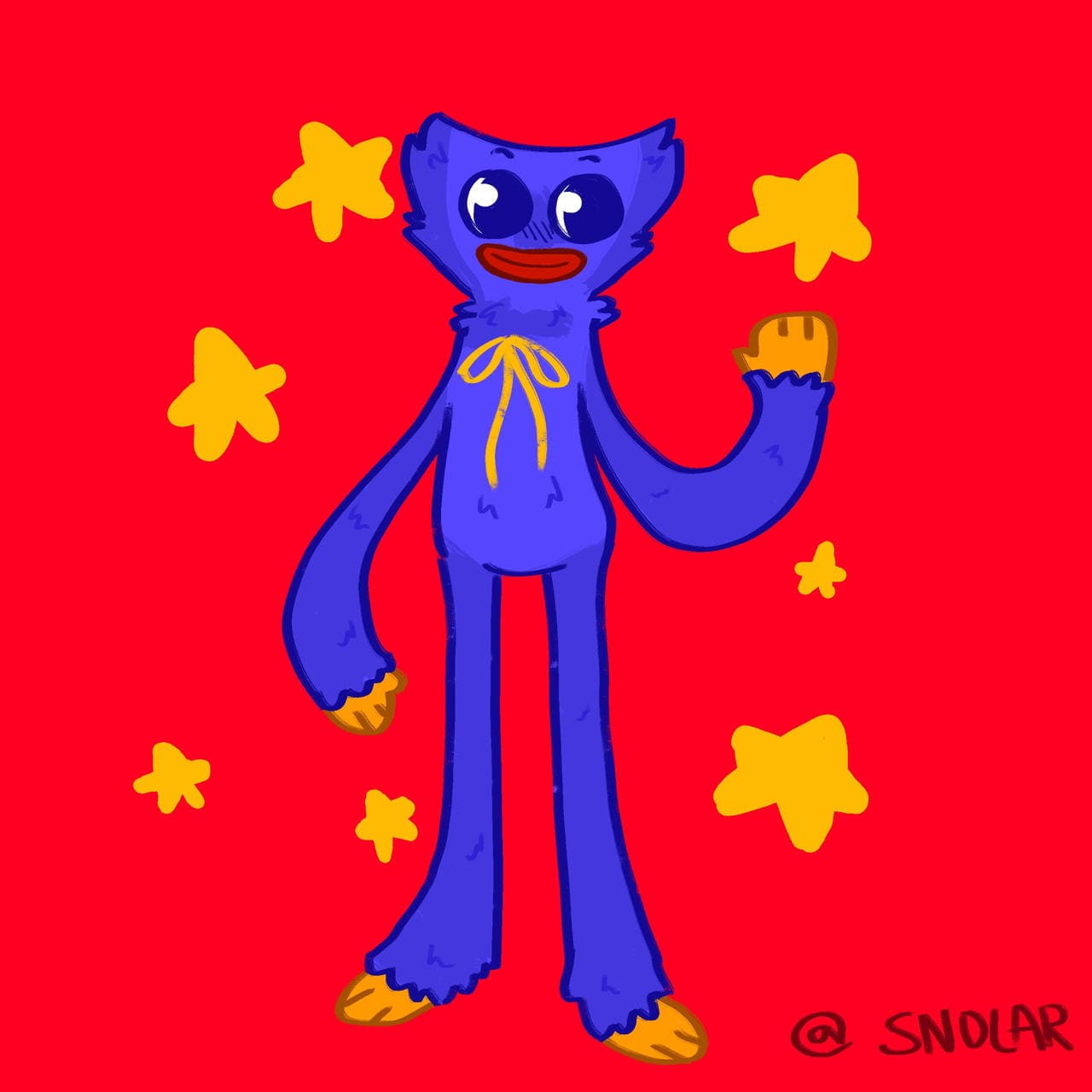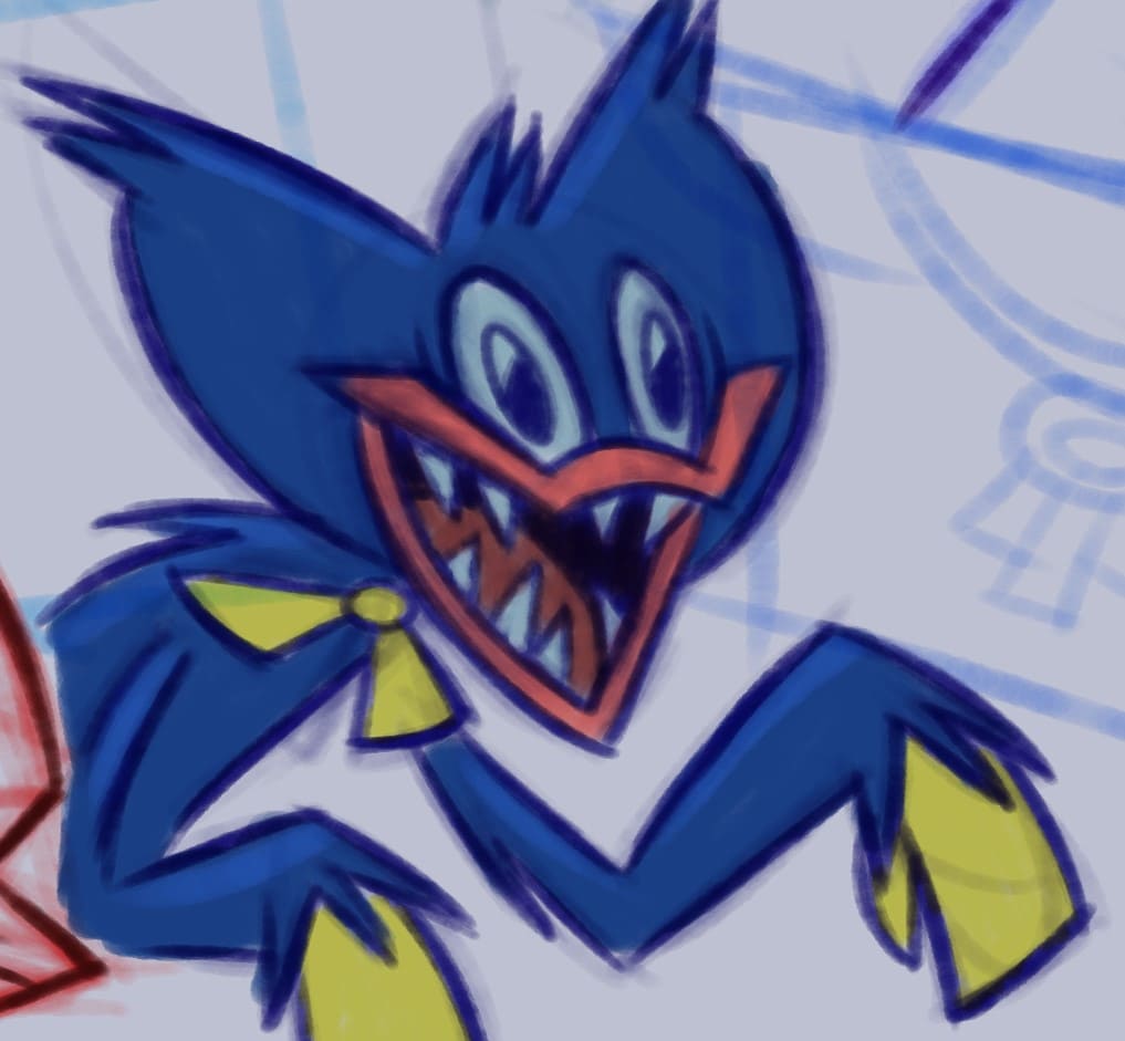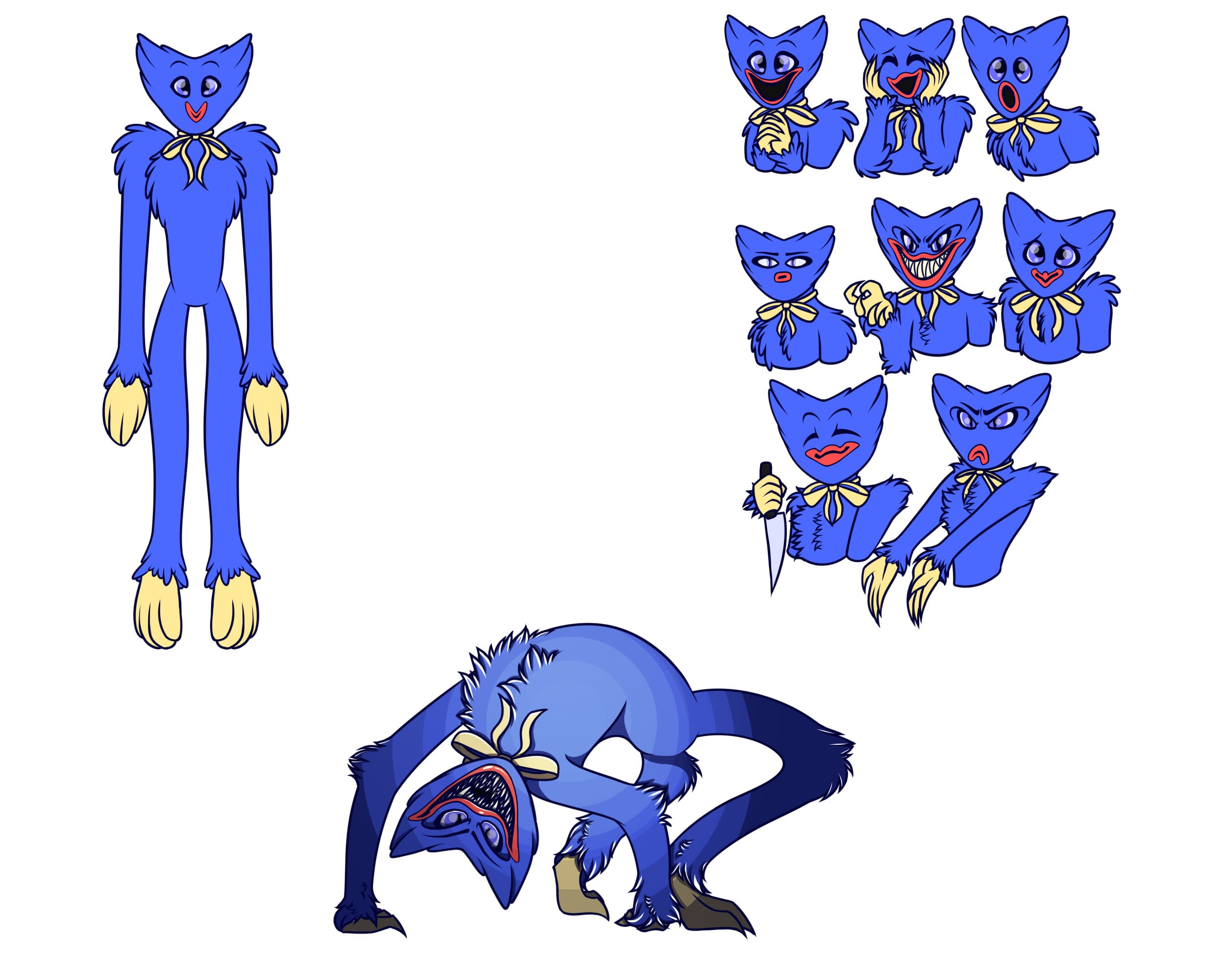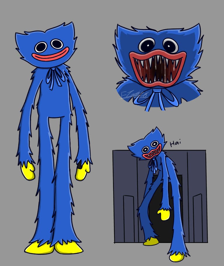 Фан концепт арт Хагги Вугги в полный рост. Он стоит с открытым ртом, а также машет вам рукой. Также здесь есть два скетча