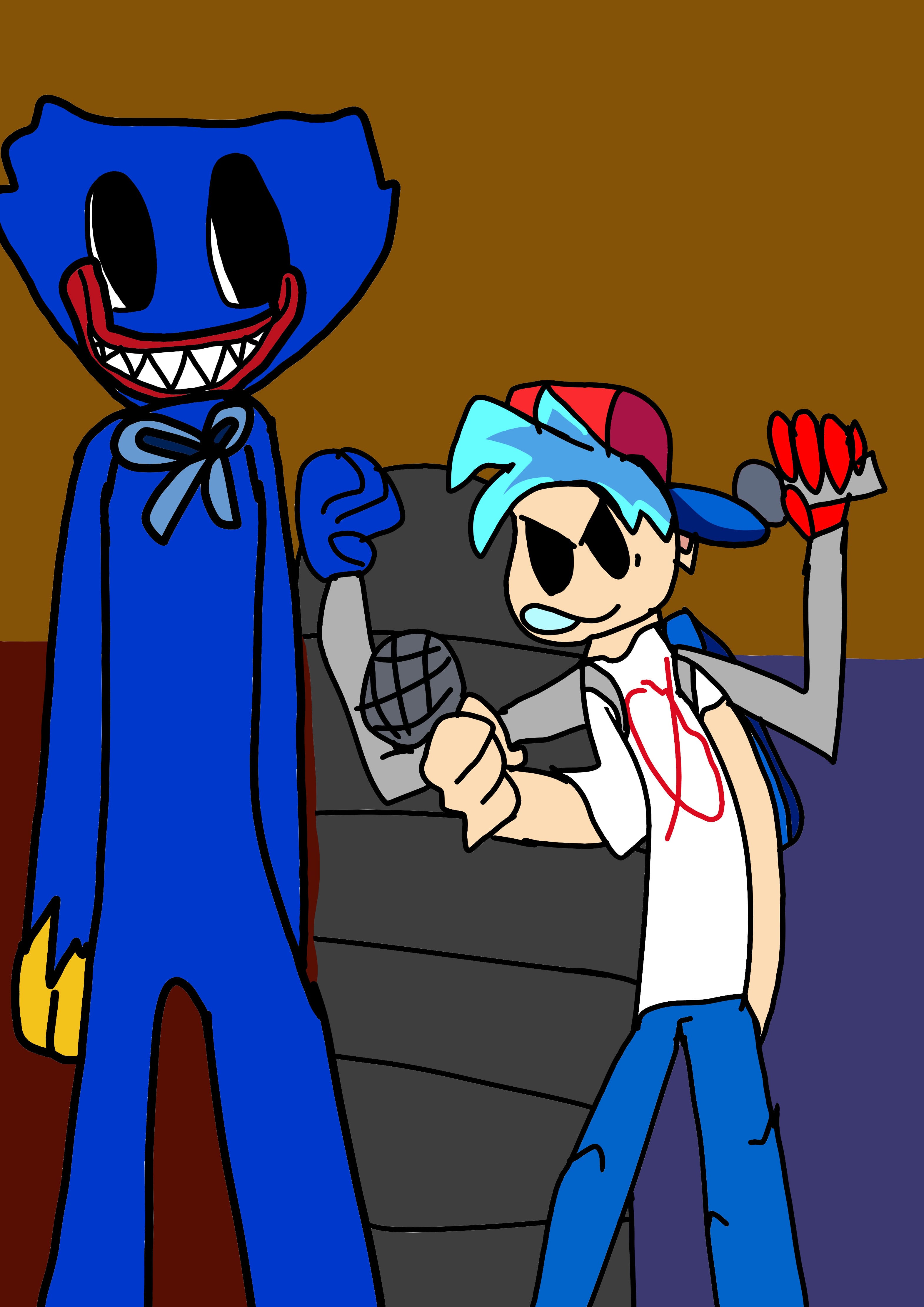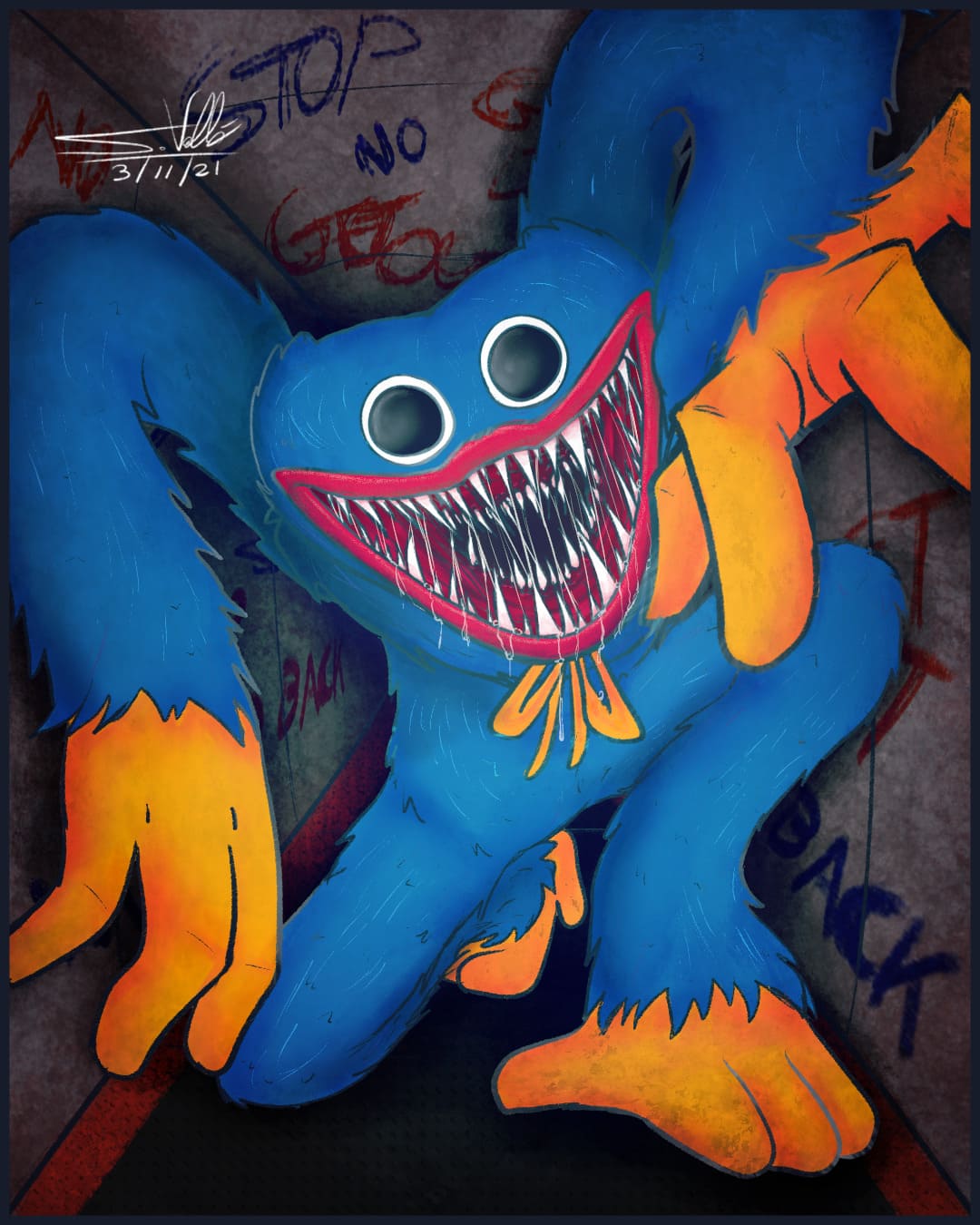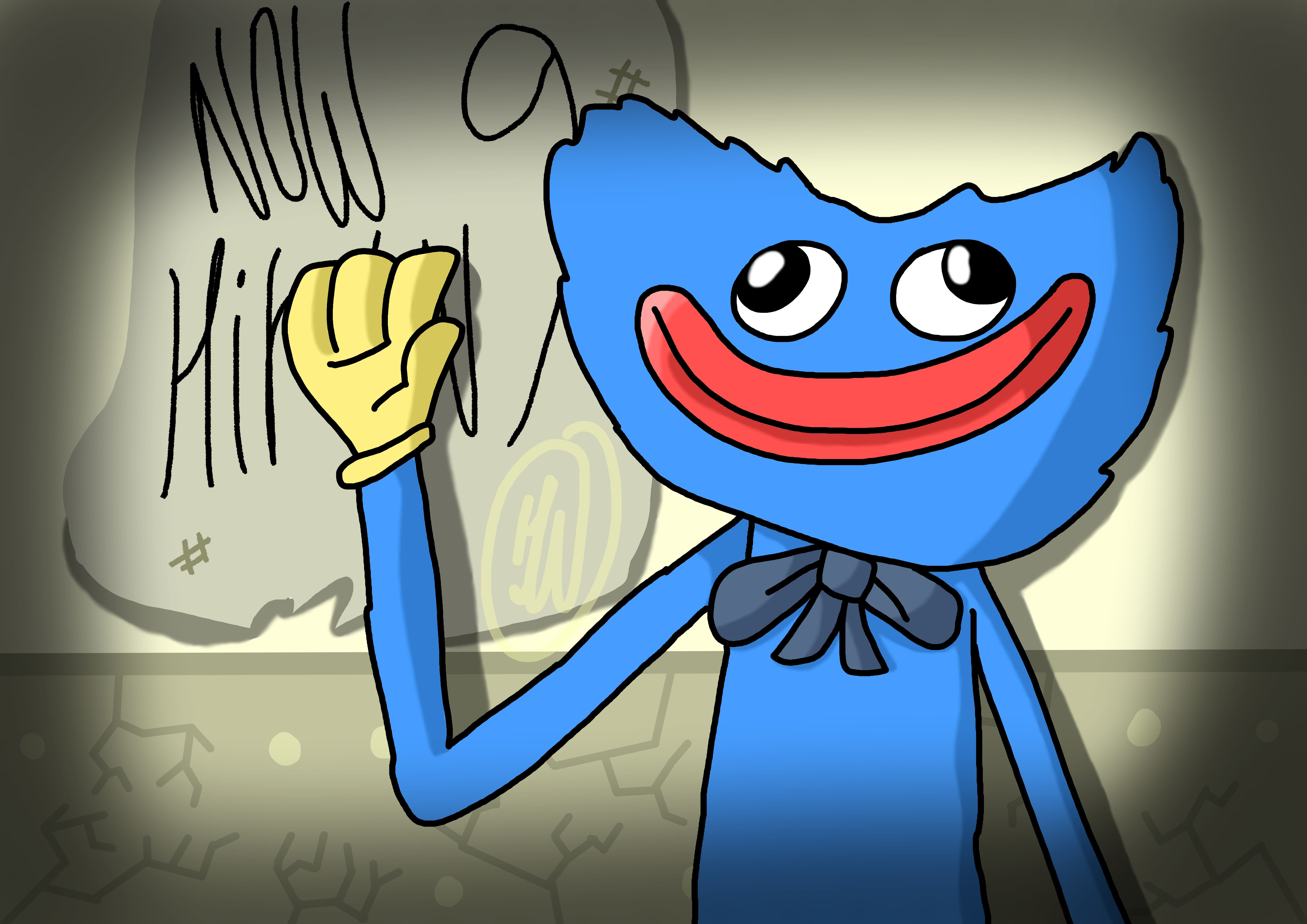 Хагги Вугги был заново сшит по частям. На этом фан-арте он показан в мультяшном стиле на фабрике игрушек