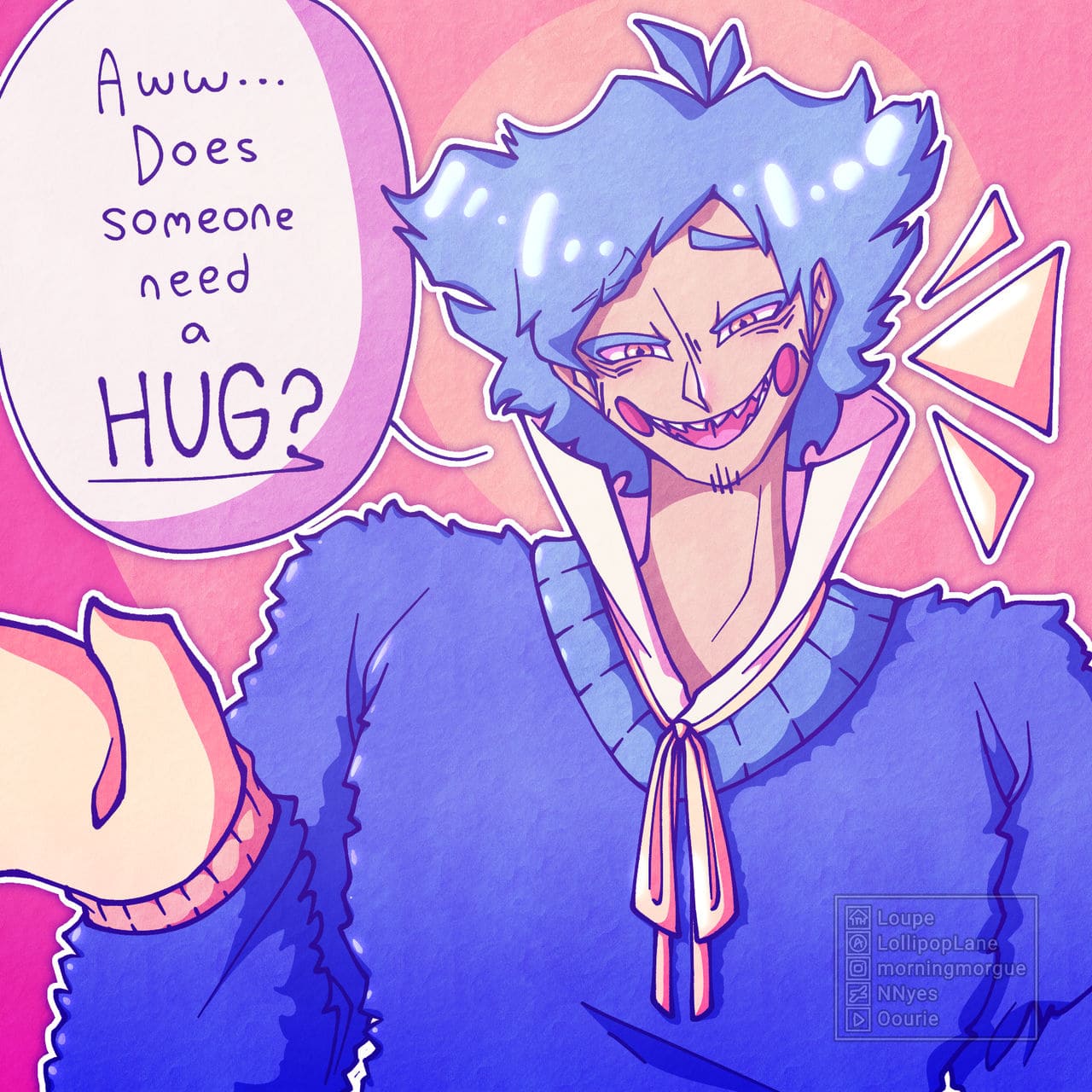 Стильный аниме персонаж в солнечных очках беззаботно позирует, но он не знает, что Хагги Вугги уже за его спиной