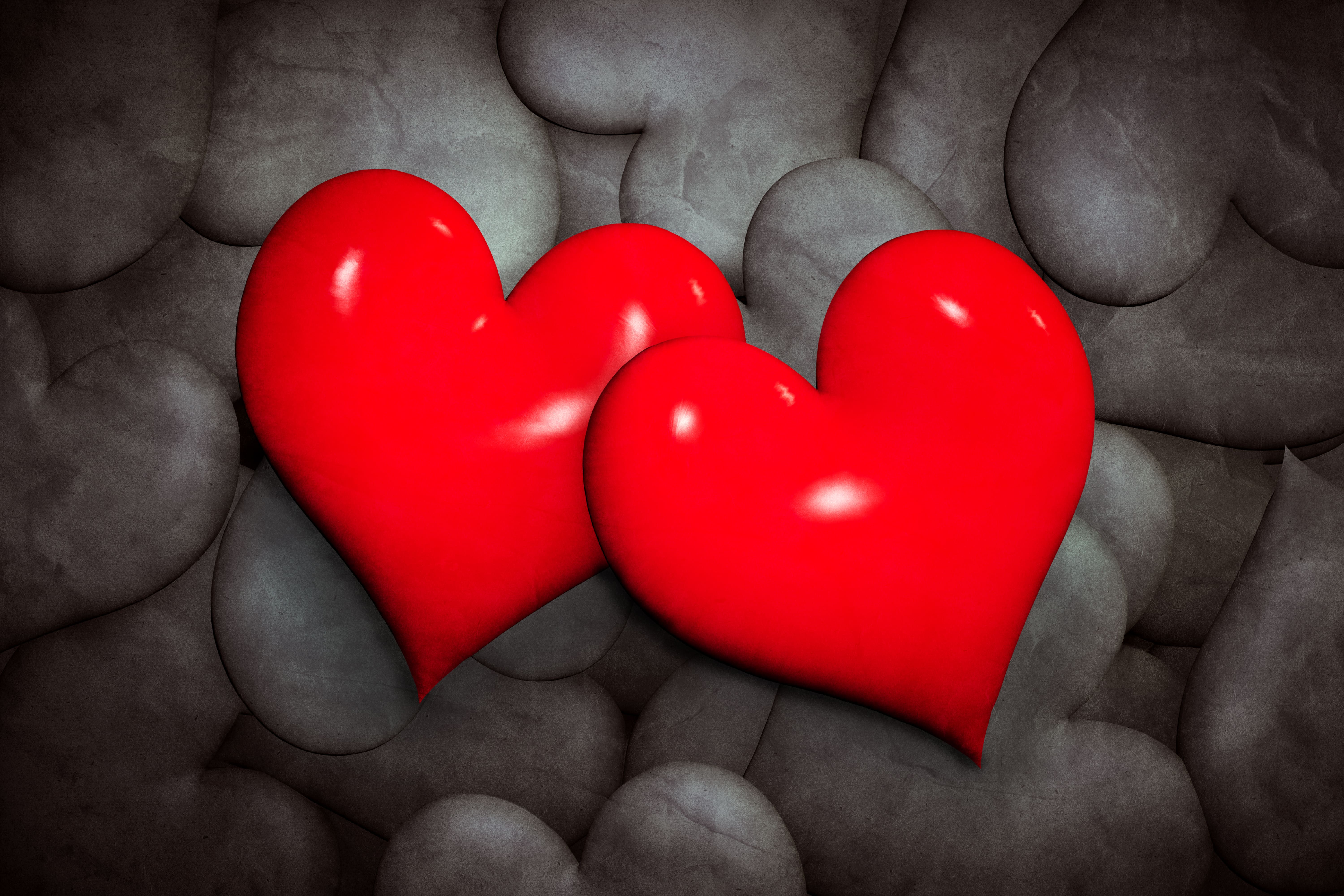 Два идеальных сердца на белом фоне