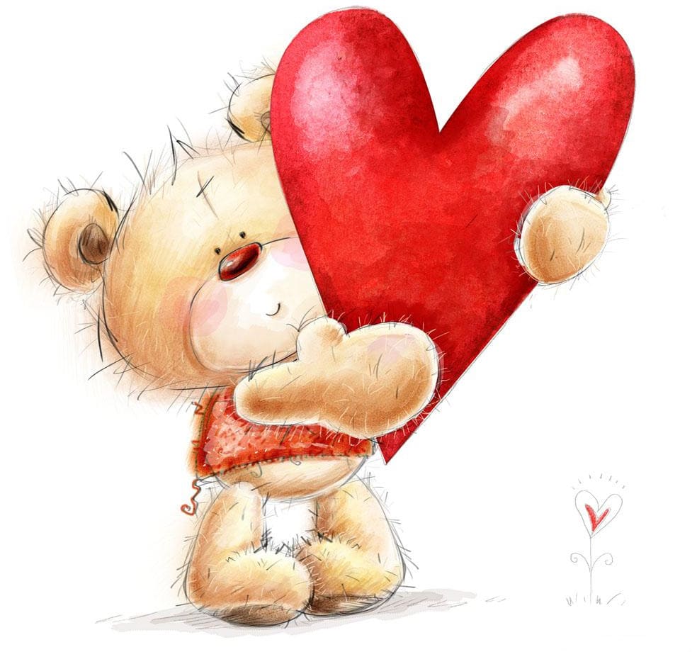 Серый медвежонок с голубым носиком дарит вам сердце