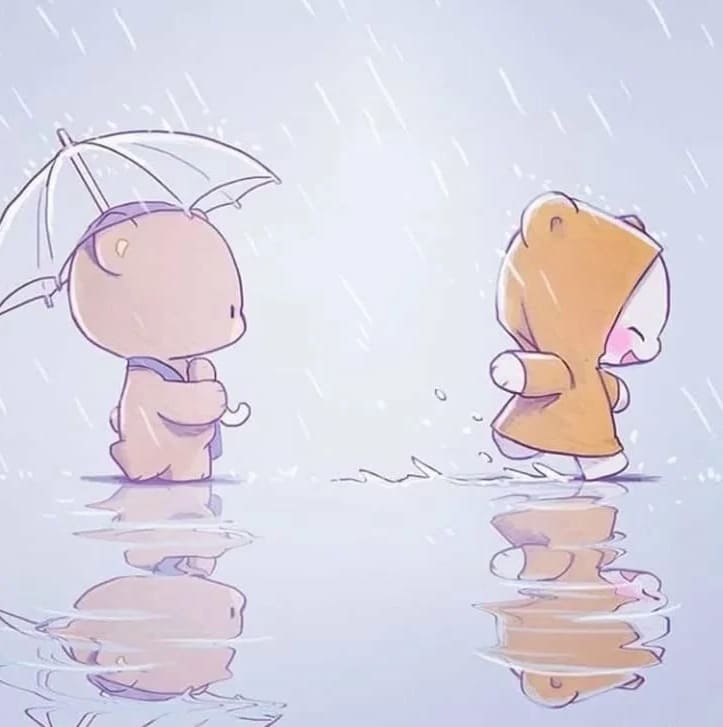 Два медвежонка во время дождя. Главная сложность этого изображения это отражение медведей в воде. Но вы можете начать без этого