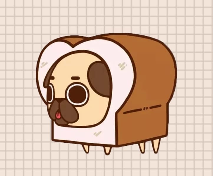 Смешной мопс внутри булки хлеба. Вам сначала стоит попрактиковаться рисовать эти два объекта отдельно друг от друга