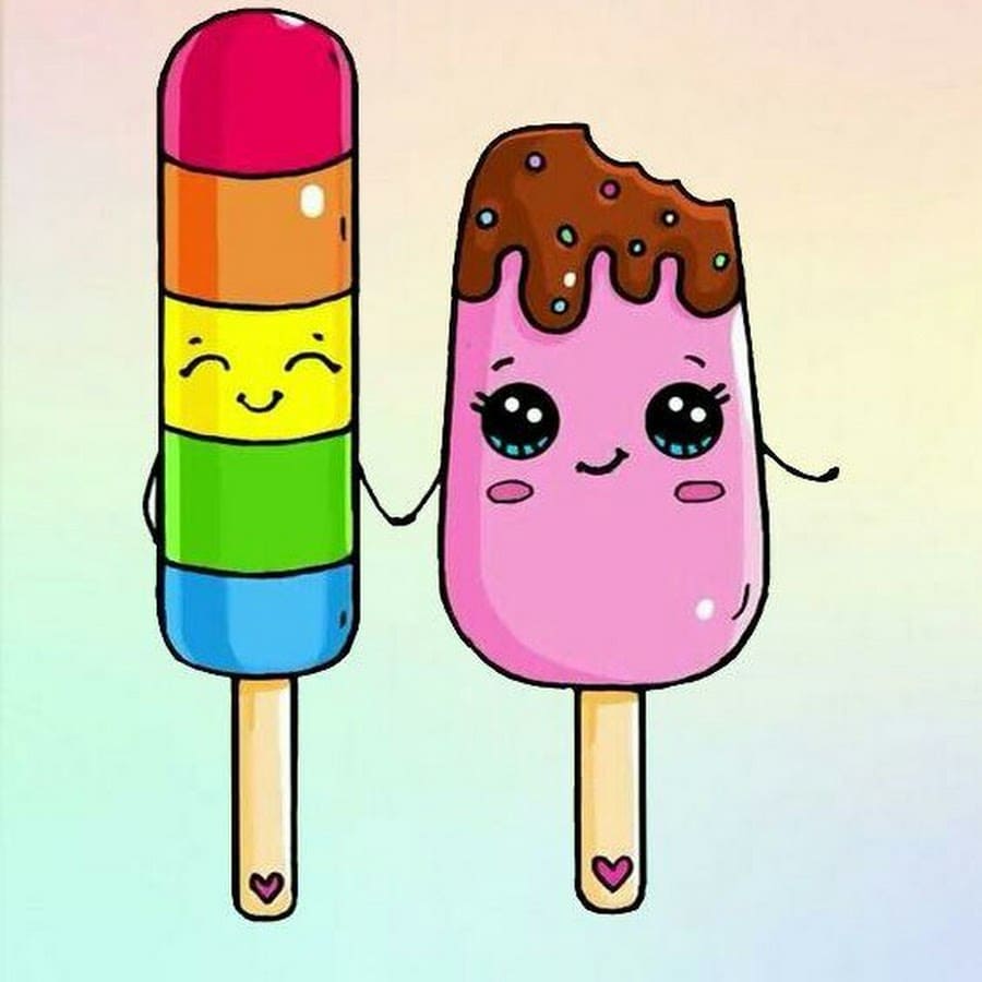 Милое мороженое, состоящее из трёх разноцветных котов. Главное в этом рисунке это настроение котов. Это простой и красивый рисунок