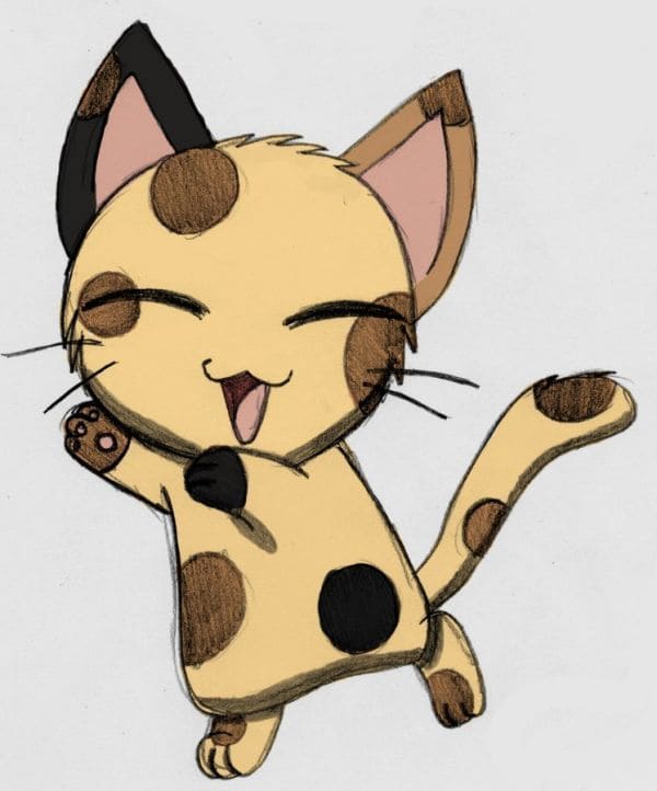 Нарисуйте форму кота, затем нарисуйте лицо, конечности и полоски на шерсти кота. Этот рисунок может быть закончен за пару минут