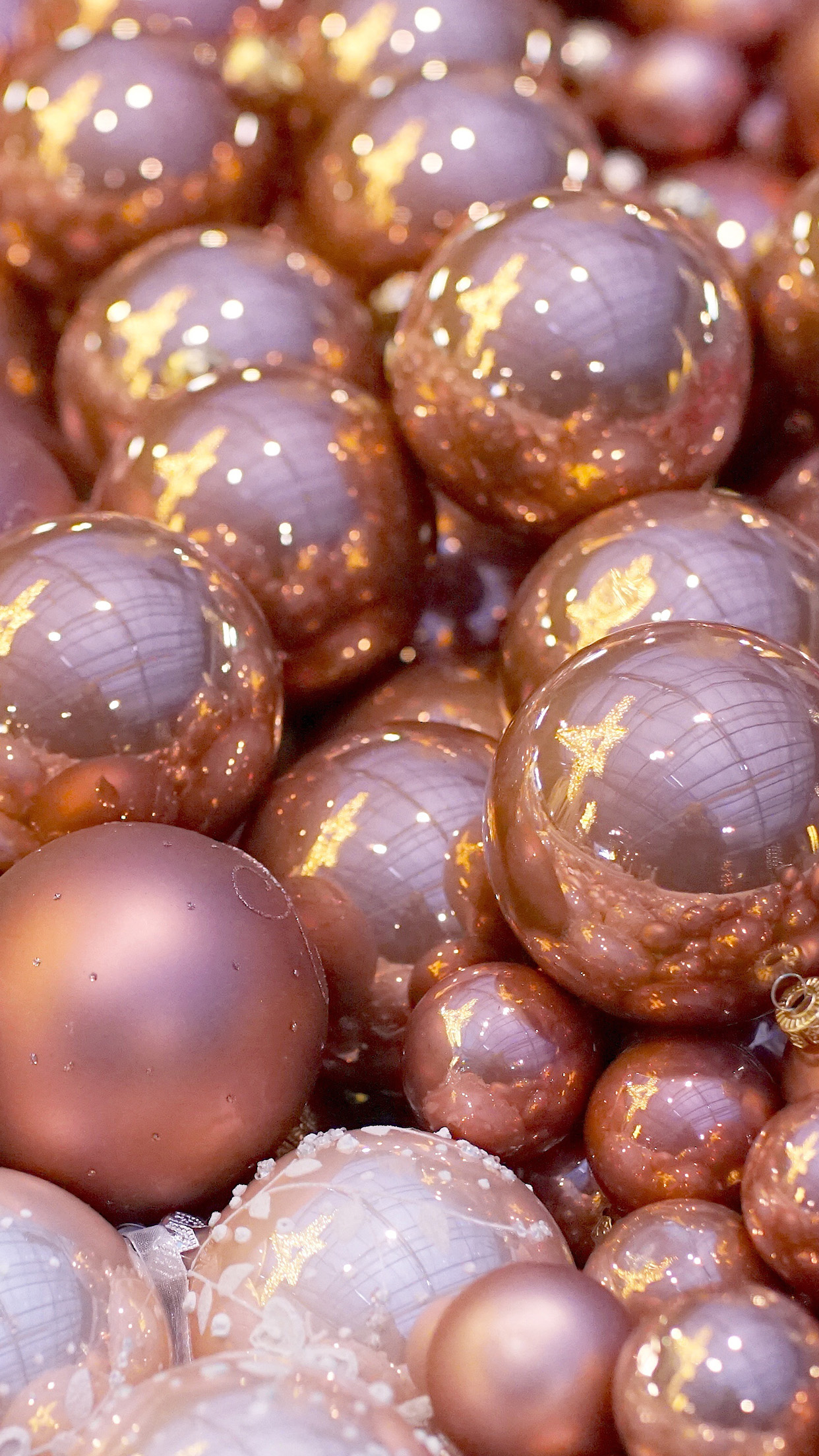 Weihnachtsspielzeugkugeln in Pastellfarben mit goldenem Muster