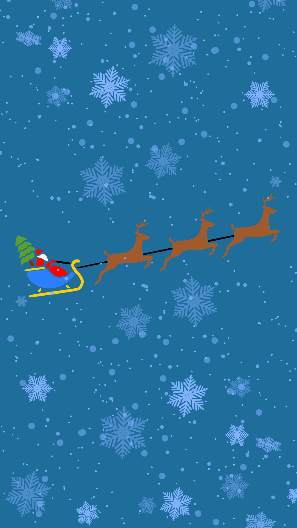 Weihnachtsschneefall und der Weihnachtsmann fährt mit einem Rentierschlitten über den Nachthimmel